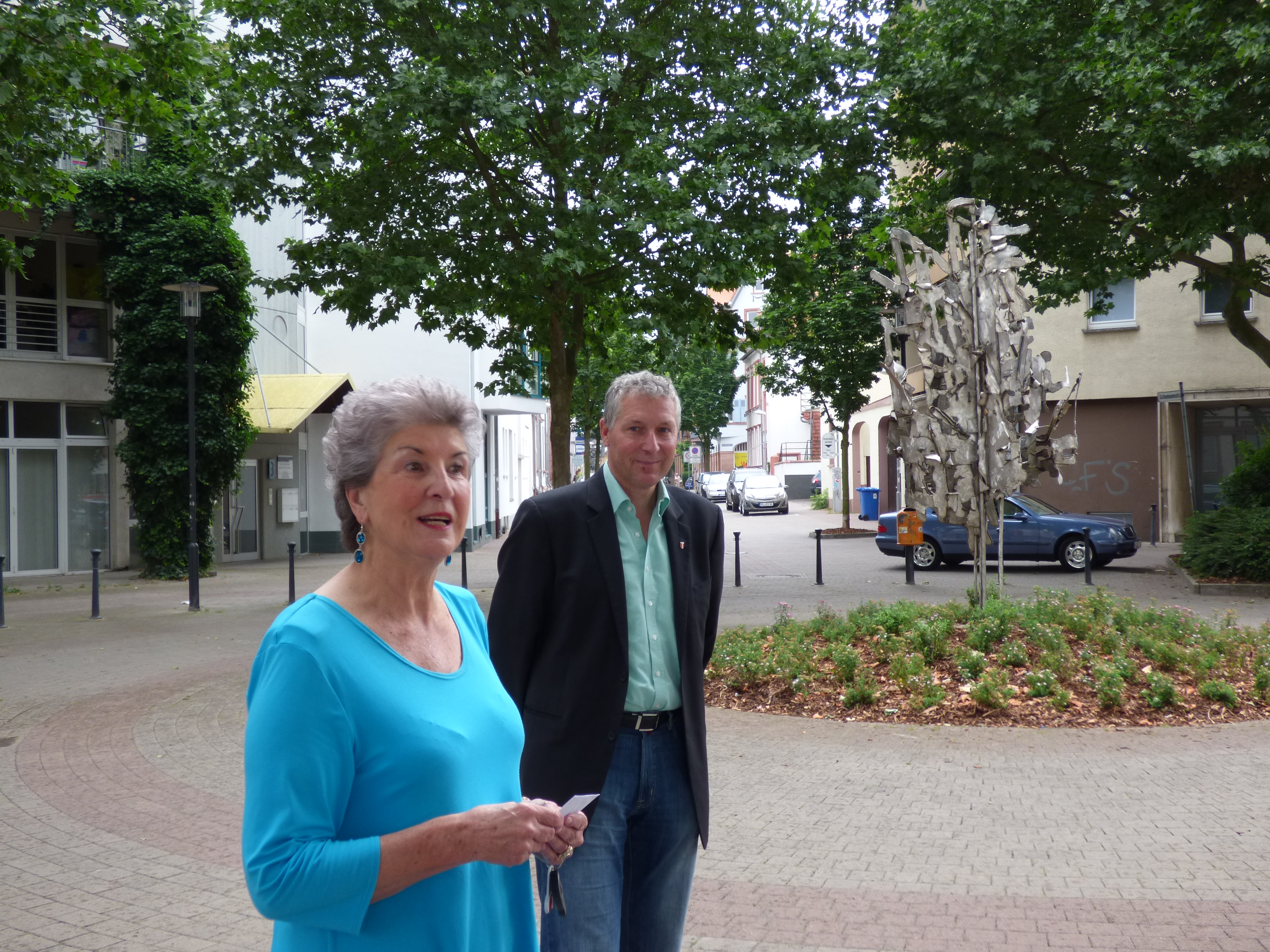 Der Verein für Baukultur und Stadtgestaltung hat mit viel Engagement die Plastik wieder repariert und hergestellt. Gemeinsam mit der Stadt wurde der Musikerplatz als geeigneter neuer Standort festgemacht und entsprechend hergerichtet. „Das Gesamtensemble des Platzes mit dem Kunstwerk ist schön geworden“, freute sich Beigeordneter Peter Kiefer bei der offiziellen Einweihung. Sein Dank galt dem Verein, der hier keine Mühen gescheut hatte, das Kunstwerk der Öffentlichkeit wieder zugänglich zu machen.