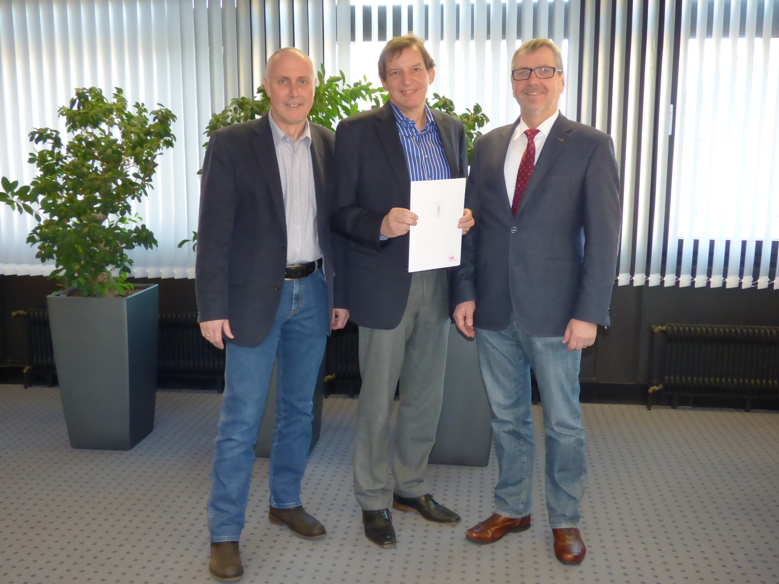 Gemeinsam mit dem Personalratsvorsitzenden Peter Schmitt dankte der Referatsleiter dem angehenden Ruheständler für sein unermüdliches und langjähriges Engagement und wünschte ihm alles Gute für die Zukunft.