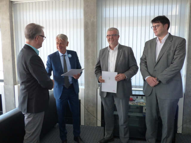 „Die digitale Transformation ist eines der wesentlichen kommunalpolitischen Themen der nahen Zukunft“, so Oberbürgermeister Klaus Weichel bei der Berufung am Dienstag im Rathaus. „Aus diesem Grund hat im Januar die KL.digital GmbH mit ihrer Arbeit begonnen, setzt digitale Projekte um oder initiiert diese. Wir sind zudem in der glücklichen Situation, dass mit Professor Rombach und Professor Steinebach zwei ausgewiesene Fachleute sowie Kenner der Kaiserslauterer Szene zur Verfügung standen, und freuen uns sehr, dass die beiden Herren in den nächsten drei Jahren ihre Tatkraft ehrenamtlich der Stadt widmen werden.“ Es sei, so Weichel, angesichts der herausragenden Aufgabe der Digitalisierung, von größter Bedeutung, den Fokus richtig zu setzen sowie entsprechende Kompetenzen zu nutzen und weiter auszubauen. Dies habe man auch in anderen deutschen Städten erkannt, wo ebenfalls entsprechende Positionen geschaffen worden seien.