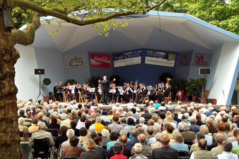 Am 20. Mai beginnt mit dem Auftaktkonzert des Musikvereins Gräfenstein die beliebte Volksparkkonzert-Reihe. Bis einschließlich 09. September finden wieder insgesamt neun Konzerte mit verschiedenen hochkarätigen Musikkapellen im blauen Musikpavillon statt. Der Eintritt ist frei, Beginn ist jeweils um 11 Uhr, die Dauer jeweils rund zwei Stunden. Für die kleinen Gäste gibt es in unmittelbarer Nähe zum Musikpavillon einen Erlebnisspielplatz.