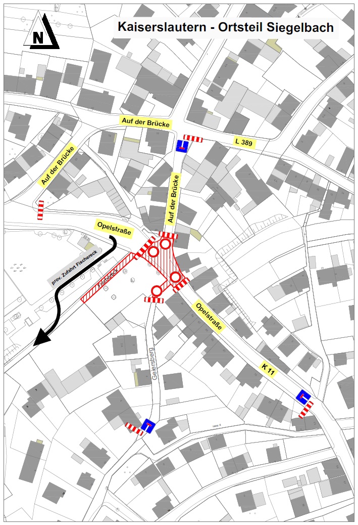 Seit Januar 2018 baut die Stadtentwässerung Kaiserslautern AöR unter dem zentral gelegenen Parkplatz in der Ortsmitte von Siegelbach ein Regenrückhaltebecken. Im Rahmen der Baumaßnahme ist ab 24. September bis voraussichtlich Ende 2018 eine Vollsperrung der Opelstraße im Ortskern erforderlich. Notwendige Umleitungen werden weitläufig ausgeschildert.