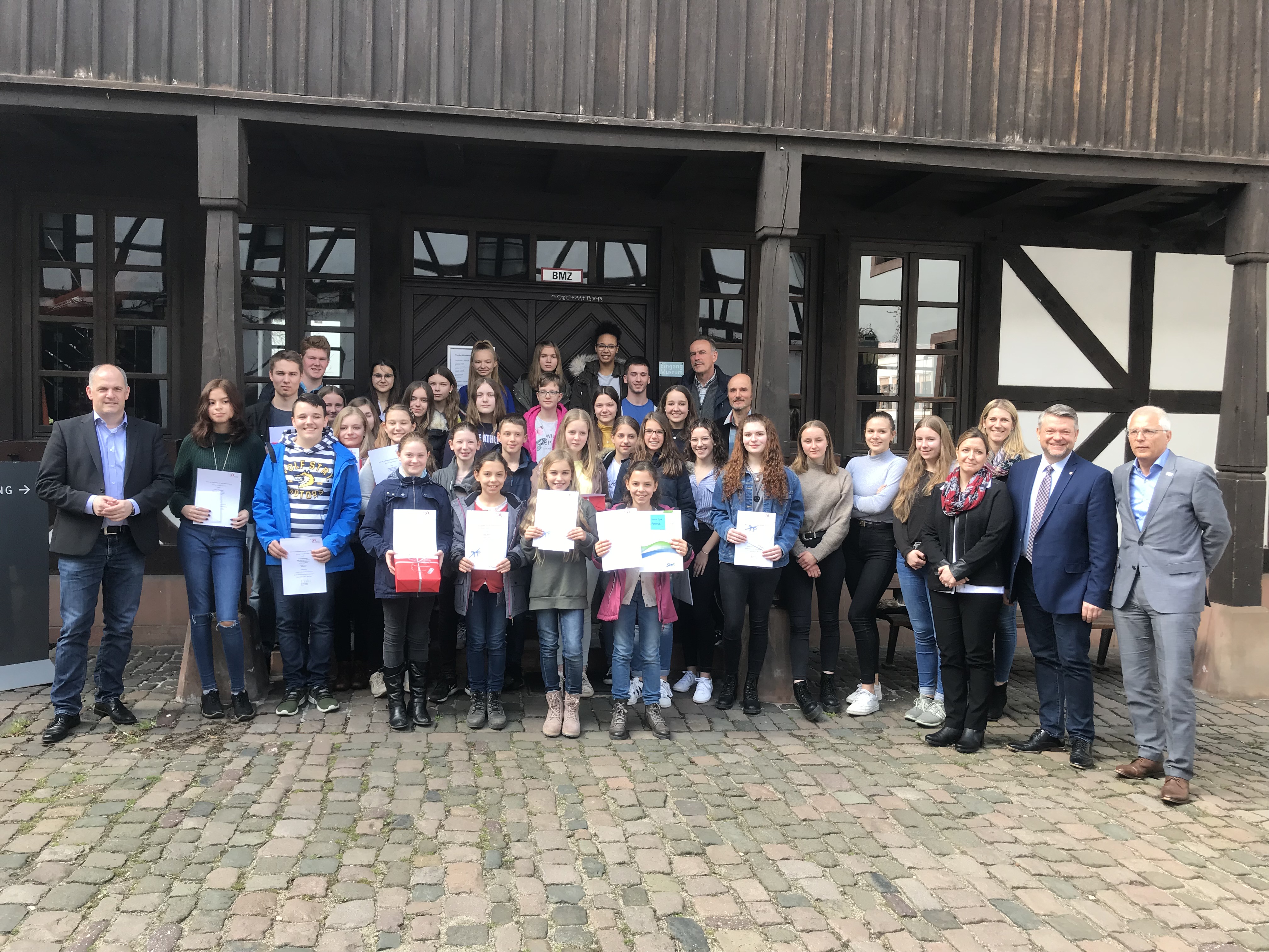 Im Rahmen der Siegerehrung überreichte Krietemeyer den Schülerinnen und Schülern Urkunden, Gutscheine und Sachpreise und wünschte allen viel Glück für den weiteren Wettbewerbsverlauf auf Landes- und Bundesebene. Außerdem dankte er den Stadtwerken Kaiserslautern und der Stadtsparkasse Kaiserslautern, die den 66. Europäischen Wettbewerb gesponsert hatten.