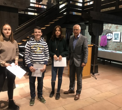 Dr. Norbert Herhammer von der Europa-Union ging in seinem Grußwort auf die geschichtliche Entwicklung und die Errungenschaften des vereinten Europas ein. Gerade in der derzeitigen Situation müsse Verantwortung übernommen werden, wie dies beispielsweise die Schülerinnen und Schüler in den ihnen gestellten Themen zu Europa geleistet haben. Am 15. Mai 2019 wird die Europa-Union an gleicher Stelle ihre Preisträgerinnen und Preisträger ehren.