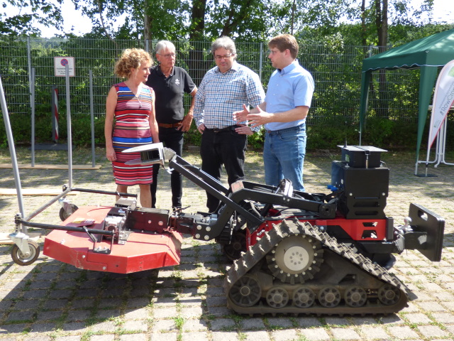 Gemeinsam mit Oberbürgermeister Klaus Weichel traf sich Staatssekretärin Heike Raab am Donnerstagnachmittag an der TUK mit Präsident Prof. Helmut Schmidt und dem Koordinator der 5G-Modellregion Kaiserslautern, dem Mobilfunkexperten Prof. Hans Schotten, um sich über den Planungsstand zu informieren. Danach ging es in die Merkurstraße, wo der Gruppe bei der Robot Makers GmbH eine autonom-fahrende Weinbergsraupe demonstriert wurde. Beim anschließenden Besuch der KL.digital GmbH am Bahnhof stellten Geschäftsführer Martin Verlage und der Chief Digital Officer der Stadt, Prof. Dieter Rombach, die aktuellen und künftigen Projekte der GmbH vor. Das DRK war mit einem mit Digitaltechnik ausgestatteten Rettungswagen vor Ort, in dem der Staatssekretärin das „kardiologische Telekonsil“ präsentiert wurde.