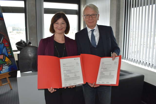 Staatssekretärin Nicole Steingaß übergibt Bewilligungsbescheide an OB Weichel