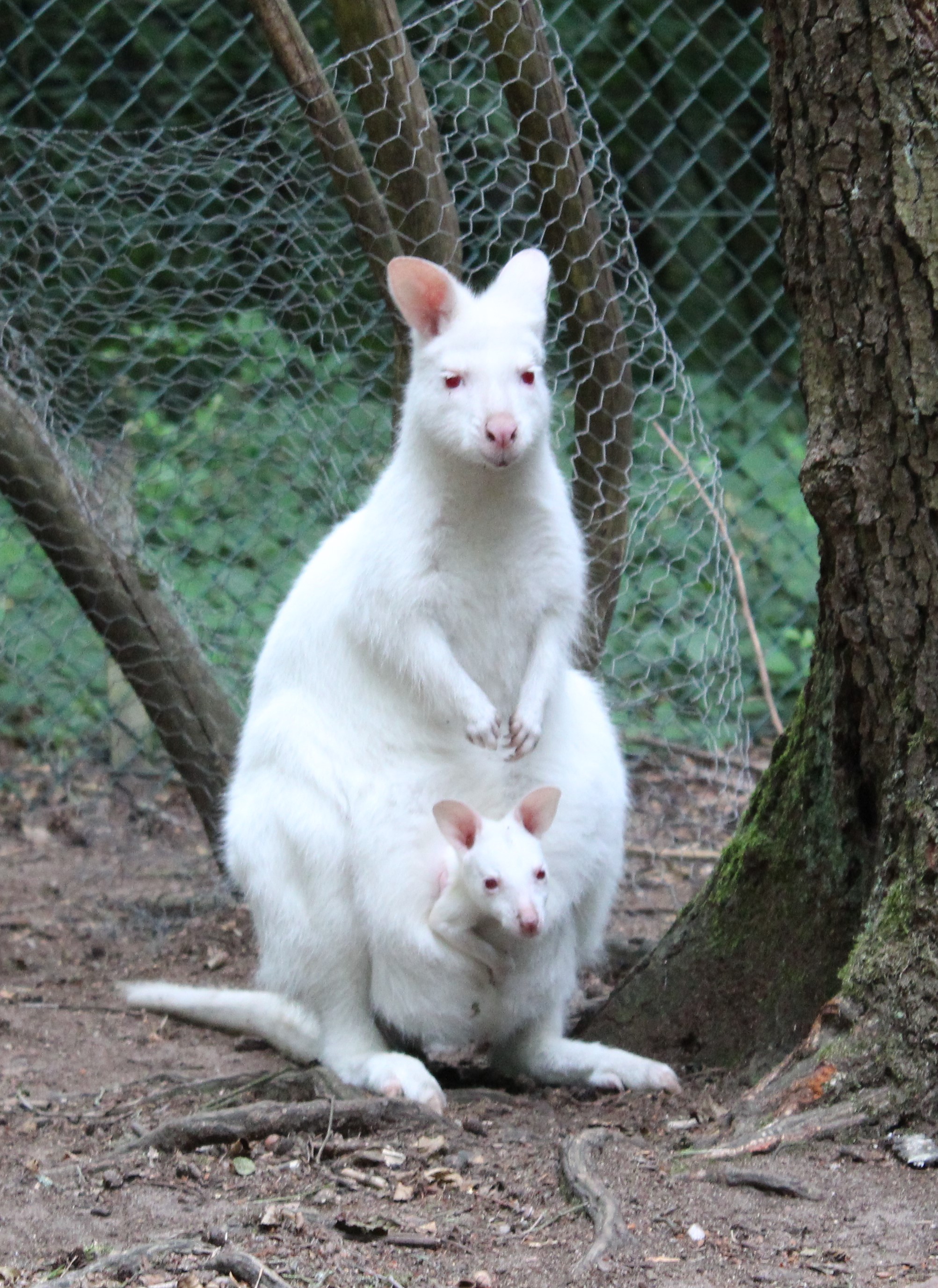 „Unser kleiner Star ist seit gestern spurlos verschwunden“, berichtet Zoo-Direktor Matthias Schmitt niedergeschlagen. Gegen 10 Uhr hatte sich das kleine weiße Känguru-Baby Mila noch einer Besucherin und ihrer Enkelin gezeigt und aus dem Beutel seiner Mama Monja geschaut. Abends stellte der Einsperrdienst dann fest, dass es nicht mehr in seinem Gehege war. Mila hatte seit einigen Wochen viele Besucher in den Zoo gelockt. Jeder wollte das weiße Bennett-Känguru einmal sehen, das im Handumdrehen die Herzen eroberte.