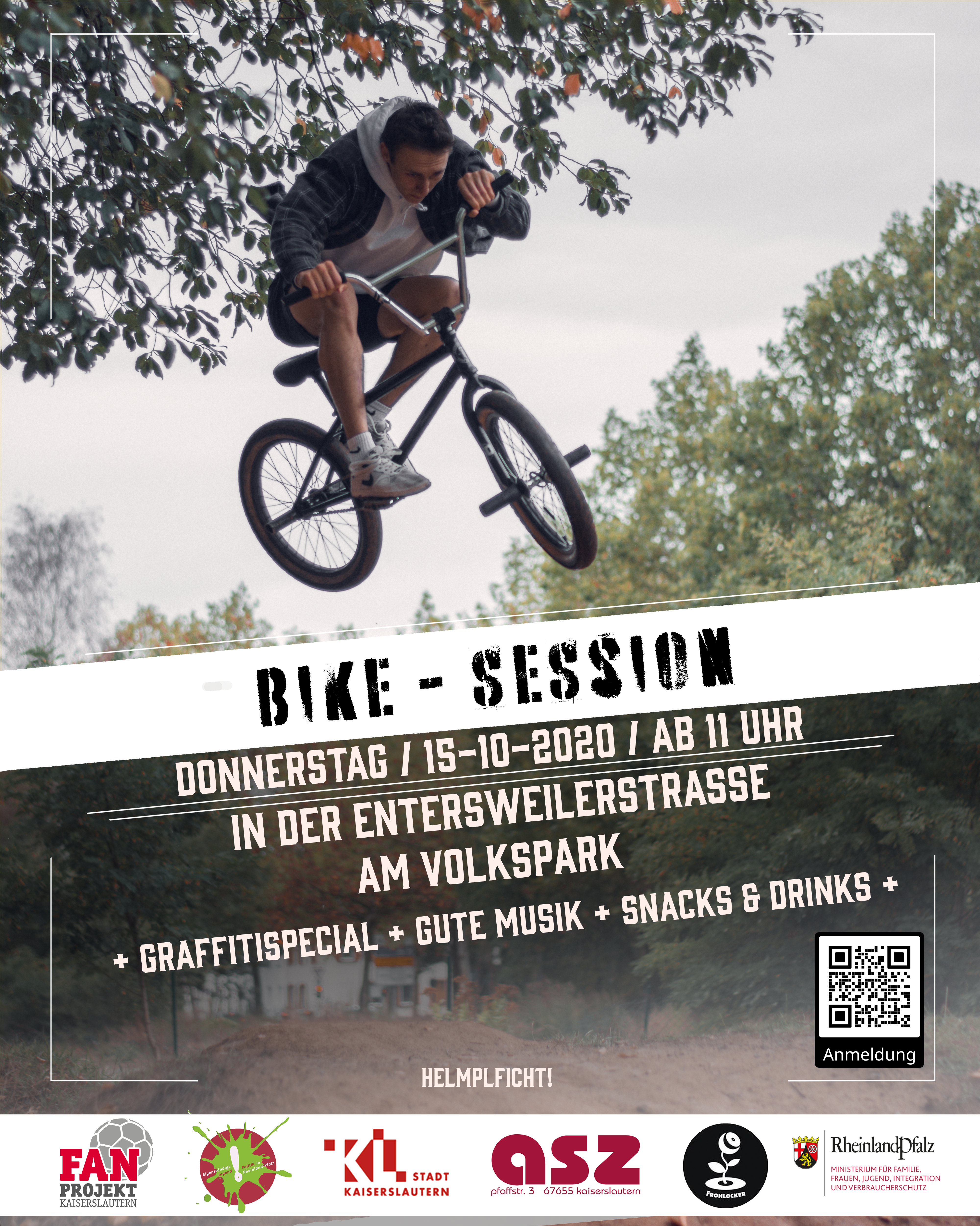 Am Donnerstag, den 15.10.20, findet auf der Pumptrack-Anlage in der Entersweilerstraße am Volkspark ab 11 Uhr eine Bike-Session statt. Ob mit BMX-Rad, Cityfahrrad, Mountainbike, Downhill-Fahrrad oder auch einfach ohne Gefährt, alle Kinder und Jugendlichen sind herzlich willkommen. Der Eintritt ist frei.
