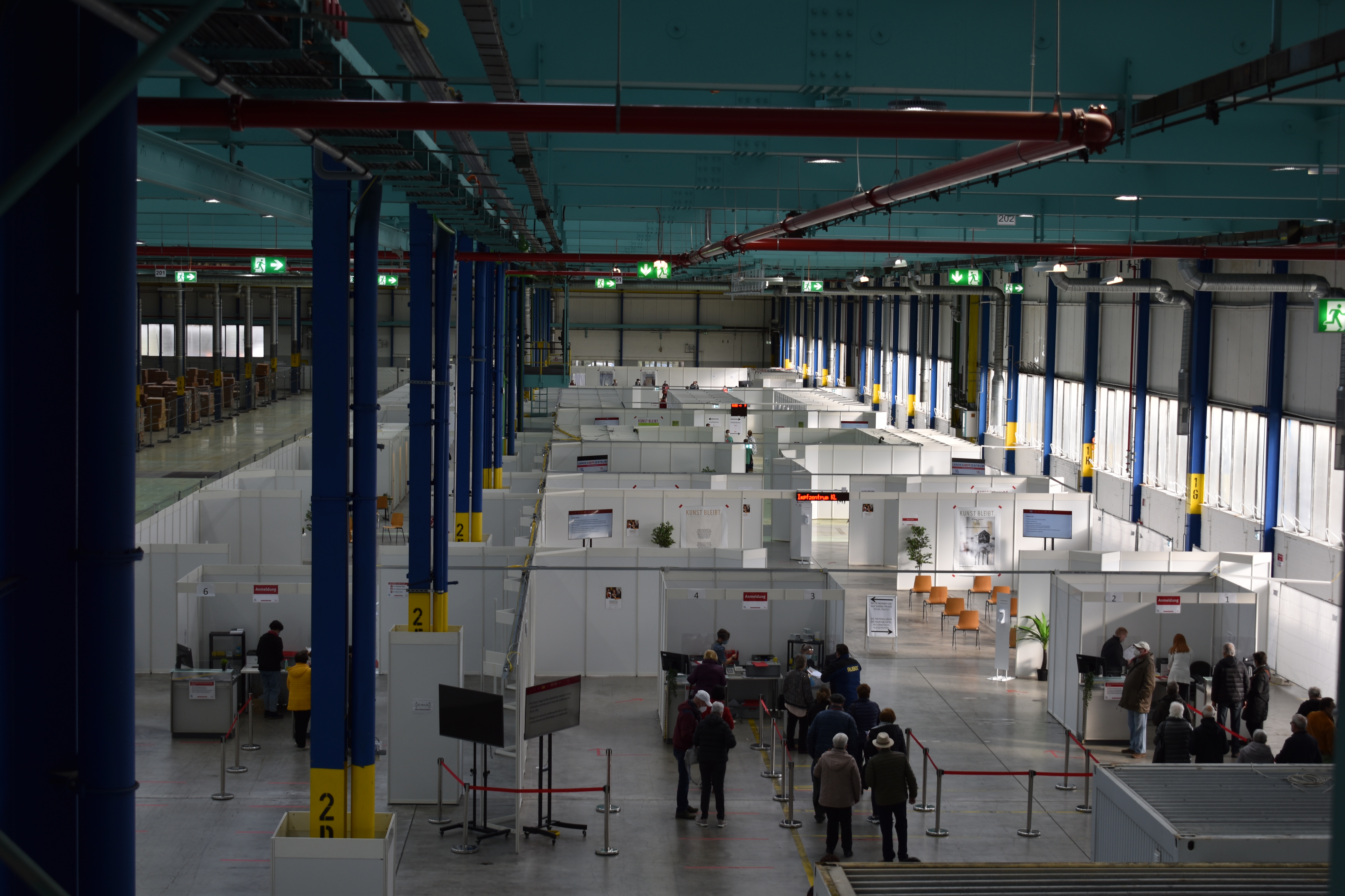 Wie die beiden Verwaltungschefs erläutern, habe man, als Ende März relativ kurzfristig mehr Impfstoff angekündigt wurde, sofort entschieden, die dritte Impfstraße aufzubauen und bis zu deren Fertigstellung vorübergehend die Öffnungszeiten bis 21.45 Uhr auszudehnen. „Dadurch waren wir in der Lage, das Mehr an Impfstoff vollständig zu verimpfen. Nun können wir durch die dritte Impfstraße die täglichen Öffnungszeiten wieder etwas zurückfahren. Dass diese auf den Tag genau wie geplant innerhalb von zwei Wochen in Betrieb gehen konnte, ist eine organisatorische Meisterleistung unserer Koordinatoren.“