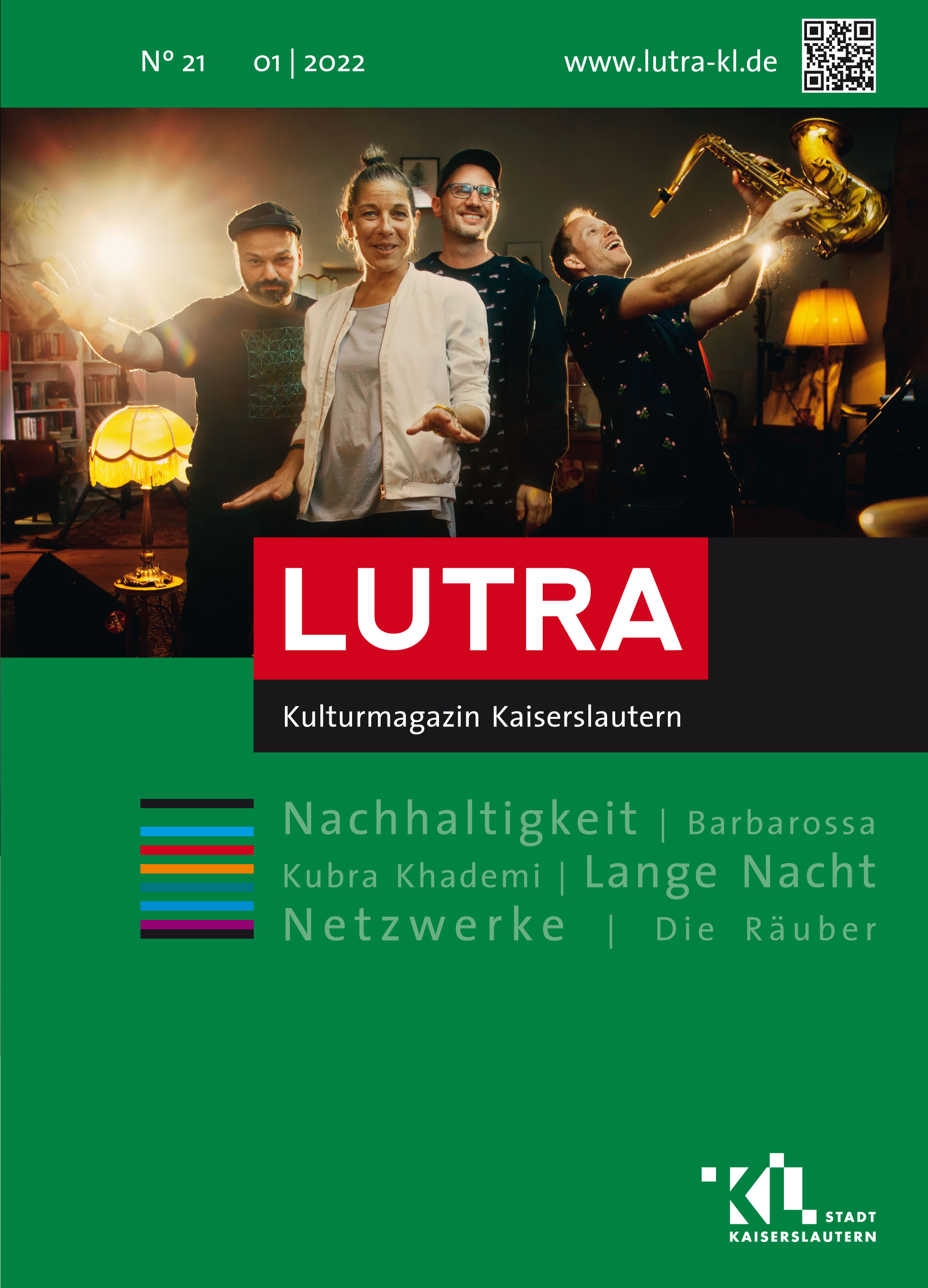 Mit Nachhaltigkeit beschäftigt sich auch ein weiterer Themenblock der 21. Ausgabe des Kulturmagazins. Dieses Mal geht es um Bildung für nachhaltige Entwicklung – kurz BNE genannt – sowie konkrete Projekte in unserer Stadt. Auch die Wissenschaft kommt hier zu Wort. So berichtet beispielsweise die TU Kaiserslautern, wie künstliche Intelligenz nachhaltiger werden soll. Außerdem stellt das IESE autonome Systeme für eine smarte Energiewende vor und der Beitrag des ITWM widmet sich dem Thema Abrechnungsbetrug im Pflegedienst. Von nachhaltiger Netzwerkarbeit zeugt außerdem die SIAK – die Science and Innovation Alliance Kaiserslautern – deren Arbeit in dieser LUTRA-Ausgabe vorgestellt wird. Sie leitet damit zur Netzwerkarbeit in der Kultur über, in deren Zusammenhang die Arbeit des Kulturnetz Pfalz e. V., das Kunst- und Kulturschaffende in vielfältiger Weise berät, im Fokus steht.