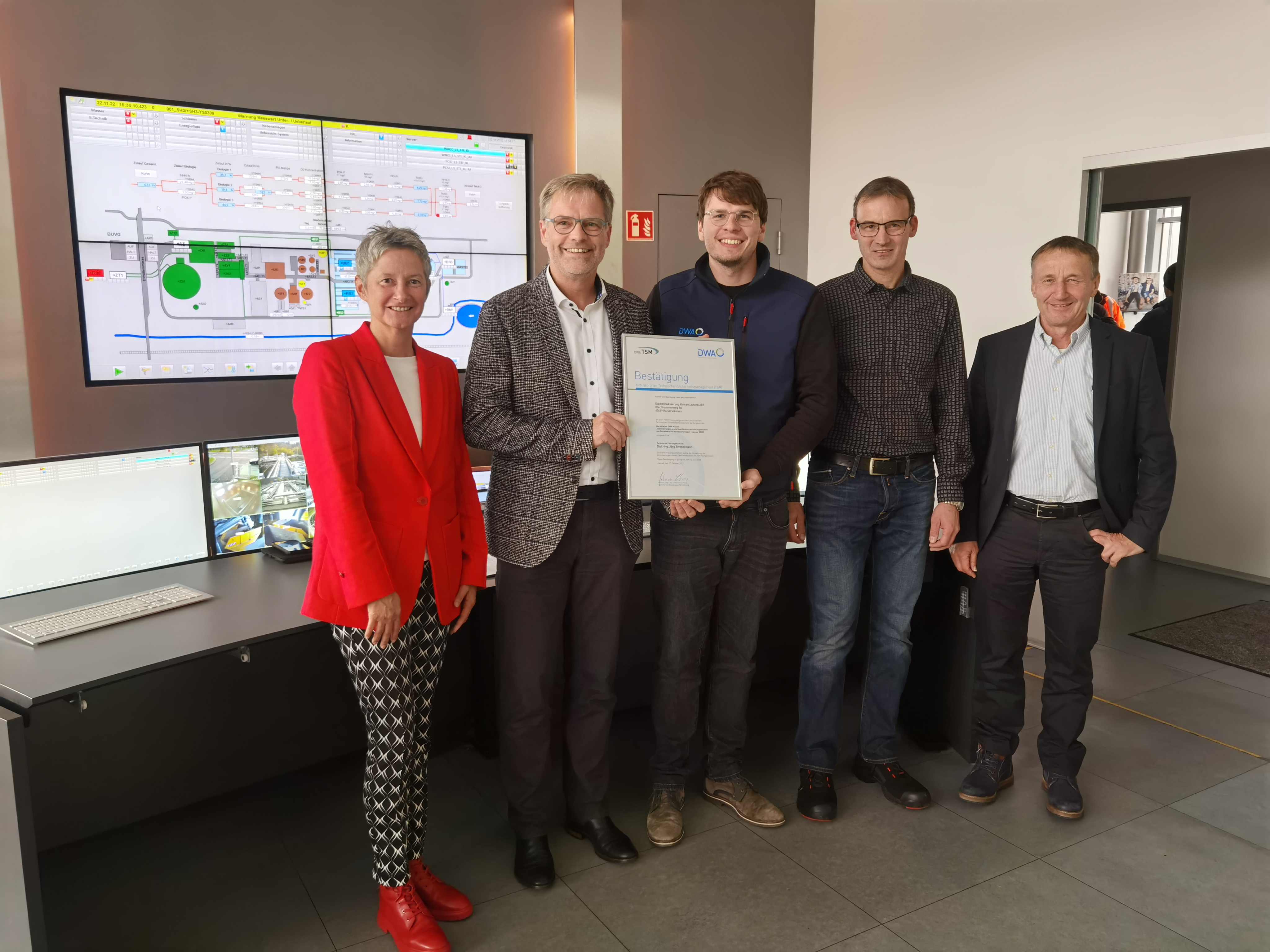 „Die Stadtentwässerung Kaiserslautern ist technisch und organisatorisch bestens aufgestellt und ein Vorzeigebetrieb!“ Mit diesen Worten gratulierte DWA-Landesverbandsgeschäftsführer Carsten Blech gestern Vorstand Jörg Zimmermann, als er ihm die Urkunde für die erneut erfolgreiche Prüfung des technischen Sicherheitsmanagements (TSM) der Stadtentwässerung Kaiserslautern AöR überreichte. Außerdem bescheinigte sein Fachverband, die Deutsche Vereinigung für Wasserwirtschaft, Abwasser und Abfall e.V., dass der Betrieb sein hohes Leistungsniveau beibehalten habe. „Wir freuen uns, dass uns auch dieses Mal die Zertifizierung problemlos gelungen ist“, meinte Zimmermann. So sei die Überprüfung in Folge der Reorganisation vieler Prozesse relativ einfach möglich gewesen. „Außerdem haben wir seit der ersten erfolgreichen Prüfung im Jahr 2017 die TSM-Anforderungen in unsere täglichen Abläufe integriert, was ebenfalls von Vorteil war.“