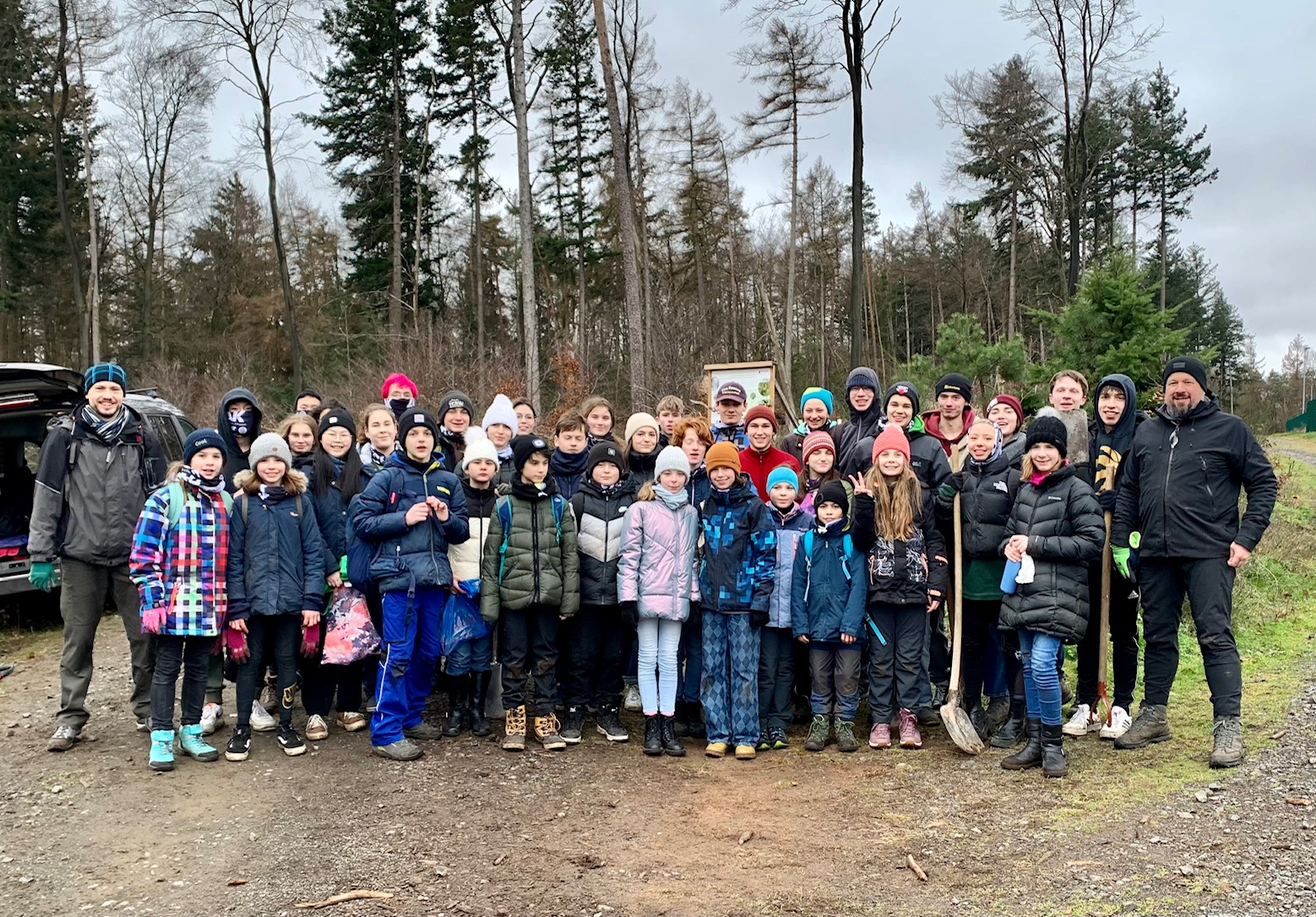 Diese Maßnahme soll nicht nur den CO2-Fußabdruck reduzieren, sondern dient auch der Erhöhung der Biodiversität und der Stabilisierung des Waldrandes. Der dortige Buchenbestand braucht einen intakten Wald, um gegen die Herausforderungen des menschengemachten Klimawandels besser gewappnet zu sein. Die Schule konnte somit ganz konkret und vor Ort einen wichtigen ökologischen Beitrag leisten. Daher möchte sie auch weitere solche Aktionen planen.