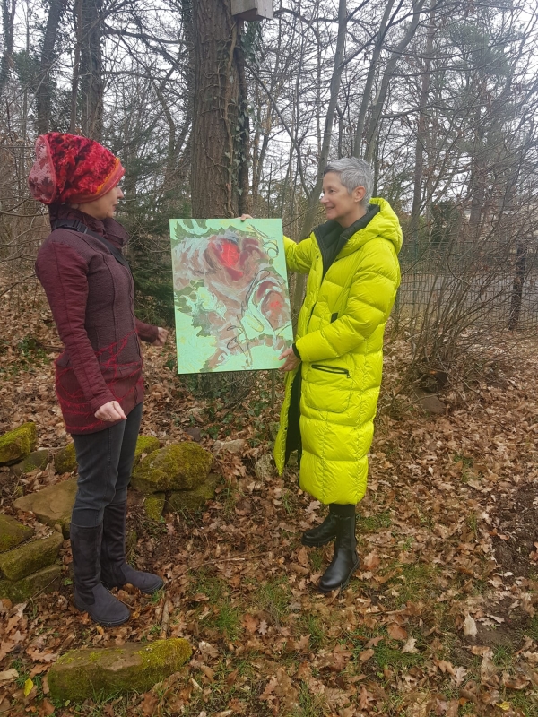 Zu Beginn jeder Kunsteinheit führt die gemeinsame Reise erst einmal auf den Schulhof oder in den Schulgarten. Dort wird geschaut, was überall zu finden ist, selbst jetzt, wo der Winter noch vieles fest im Griff hat. Zurück im Klassensaal, werden die gefundenen Schätze – Blätter, Steine oder eine Feder – zuerst auf ihre Beschaffenheit und Farbnuancen hin untersucht, bevor es ans künstlerische Werken geht. Dabei leitet Judith Boy die jungen Teilnehmenden dazu an, sich mit ihren Objekten genau auseinanderzusetzen, „sie zu betrachten, zu befühlen und daran zu riechen“. Denn das Einbinden von Materialien aus der Natur, von gebrauchten Dingen, die in den Kunstwerken zu neuem Leben erweckt werden, ist wichtiger Bestandteil des Konzepts. Darüber hinaus werden der bewusste Umgang mit Farben, Papier und Wasser sowie diverse Maltechniken gelehrt. „Dabei entstehen nicht nur Zeichnungen, sondern auch zarte Aquarelle oder Bilder mit kräftigen Acrylfarben auf Leinwand“, erläutert Boy.