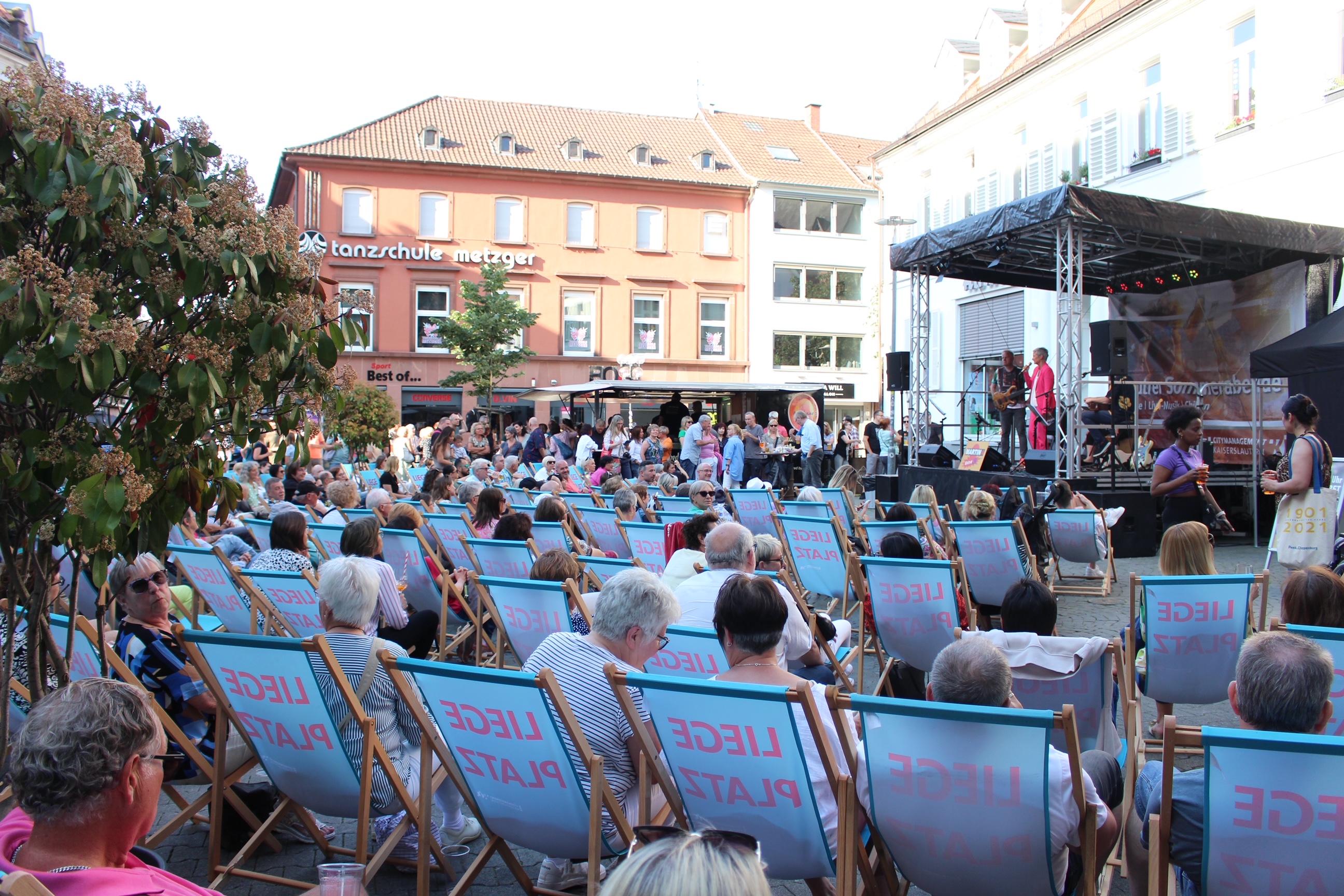 Die Liegestühle waren voll, das Wetter gut. Am Donnerstagabend feierte die diesjährige Konzertreihe der „Lautrer Sommerabende“ mit einem Konzert von „MarTINA Extra 3“ vor der Stiftskirche einen gelungenen Auftakt. Insgesamt finden bis 17. August wieder sechs Konzerte statt, jeweils von 17 bis 21 Uhr, alle in der Innenstadt, aber an unterschiedlichen Orten. Der nächste „Sommerabend“ steigt am 15. Juni 2023 vor dem Riesenbrunnen, wo die Band „Small Pint“ zu Gast sein wird. Organisiert wird die Konzertreihe vom Citymanagement, alle Termine und Detailinformationen zu den Künstlern sind in der Stadt KL App zu finden oder in unserer Pressemitteilung vom 19. Mai.