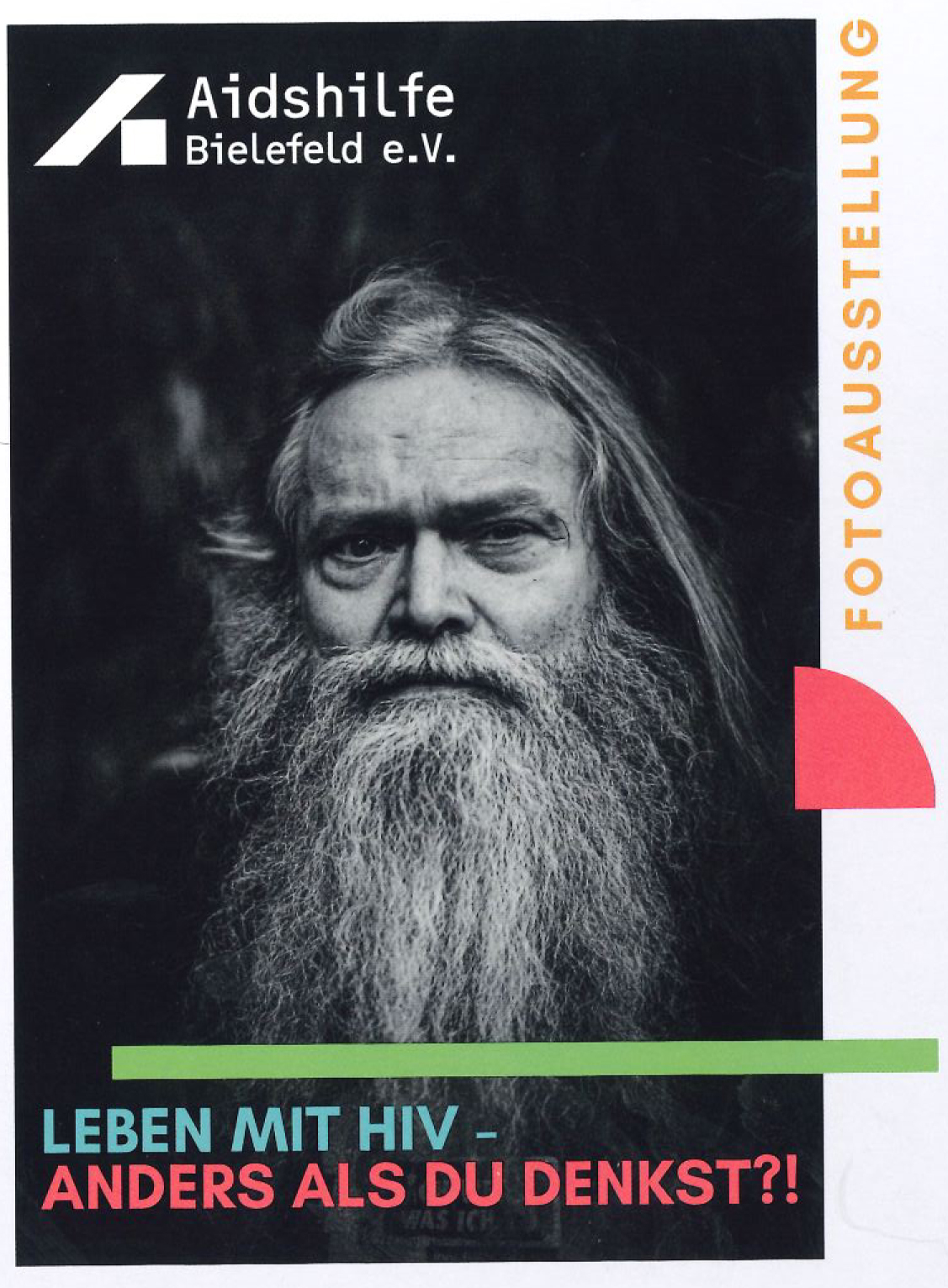 Die im Foyer der Fruchthalle zu sehende Ausstellung wurde letztes Jahr von der AIDS-Hilfe Bielefeld e. V. konzipiert. Sie wird von dieser allen interessierten Ausstellenden zur Verfügung gestellt. Die Idee dahinter ist, dass keine und keiner besser über das Leben mit HIV berichten kann als die Betroffenen selbst. Im Rahmen einer Förderung durch die Deutsche AIDS-Hilfe entstand so eine bildliche Umsetzung des Lebens mit HIV. So können sich auch Menschen, die im Alltag keine Berührungspunkte mit der Thematik haben, einen Eindruck davon verschaffen, was die Krankheit für die Betroffenen und ihre Angehörigen bedeutet.