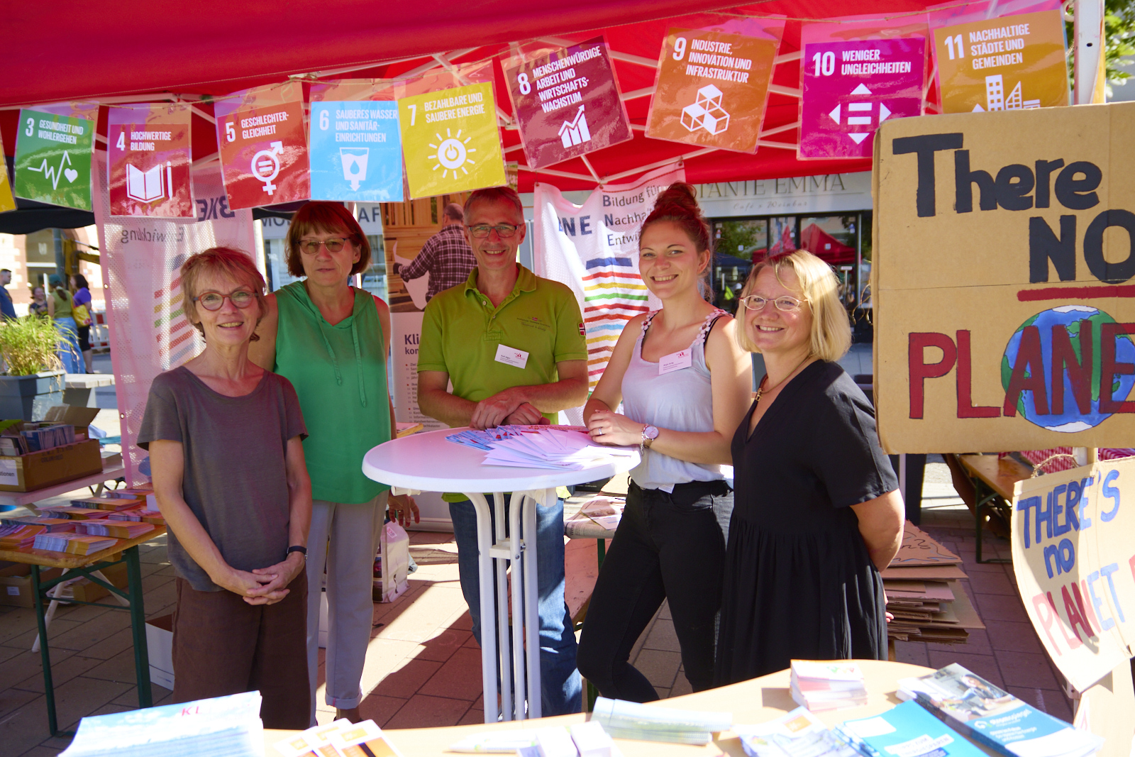 Währenddessen erläuterte das städtische Bildungsbüro, was es mit der so genannten„Bildung für nachhaltige Entwicklung“ auf sich hat. Außerdem stellte es die 17 Nachhaltigkeitsziele der UN vor und bot den jungen Besucherinnen und Besuchern an, bunte Plakate zu für die nächste Klimademonstration zu entwerfen.