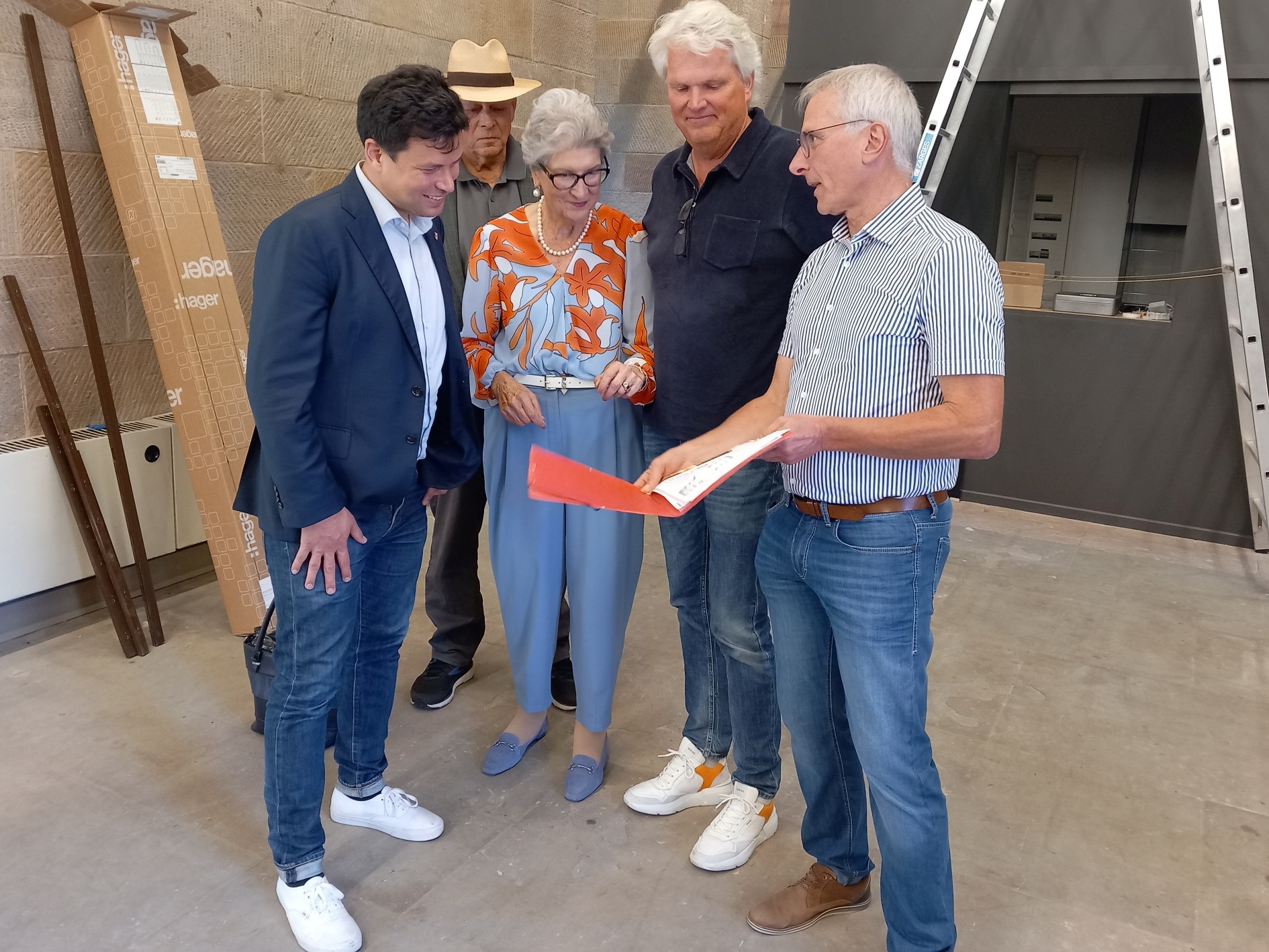 Udo Holzmann führte aus, dass in der Friedenskapelle auch noch ein neuer Fußboden fehle. Der alte Sandsteinboden könne in dieser Form nicht mehr genutzt oder restauriert werden. „Hier wird es einen neuen, verlegbaren Boden geben, der bei den unterschiedlichen Verwendungen der Halle auch gut zu reinigen ist“, informierte Michael Staudt über ein weiteres Vorhaben der VHS. Danach warfen alle Anwesenden einen Blick in die vorliegenden Baupläne und diskutierten gemeinsam die nächsten Schritte. Beim anschließenden Rundgang überzeugte sich der neue Baudezernent nicht nur vom gelungenen Einbau der Küche und der sanitären Anlagen. „Auffallend sind vor allem die Zeugnisse aus früheren Zeiten, die hier in der Bausubstanz auf die recht unterschiedliche Nutzung der Friedenskapelle im Laufe ihrer Geschichte hinweisen“, freute sich Steinbrenner. Diese gelte es weiterhin zu bewahren und das Kulturdenkmal bestmöglich in die Stadtgesellschaft zu integrieren.