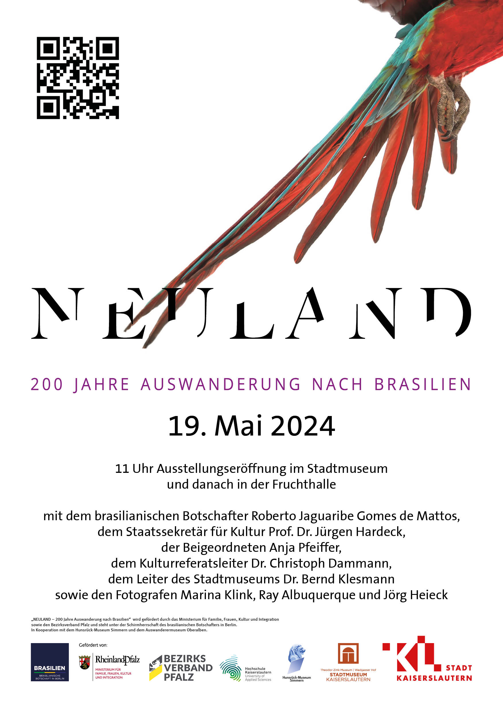 Das Hunsrück-Museum Simmern und das Stadtmuseum Kaiserslautern (Theodor-Zink-Museum | Wadgasserhof) nehmen dieses Jubiläum zum Anlass, um an die faszinierende Geschichte der Aus- und Einwanderung zu erinnern und die bis heute bestehenden Verbindungen nach Brasilien zu feiern. Neben einer analogen und virtuellen Ausstellung in Kaiserslautern und Simmern findet auch ein umfangreiches Begleitprogramm unter dem Titel "NEULAND – 200 Jahre Auswanderung nach Brasilien" statt.