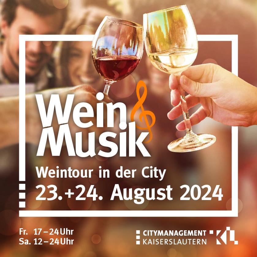 Am Freitag und Samstag, 23. und 24. August 2024, lädt das Citymanagement Kaiserslautern wieder zur Weinerlebnistour ein, denn „Wein & Musik“ geht in die dritte Runde. Unter dem Motto „Wein und Genuss“ präsentieren sich fast 35 Gastronomiebetriebe, auch Open-Air, und bieten eine tolle Gelegenheit, ihre Angebote kennenzulernen und vor allem zu probieren.