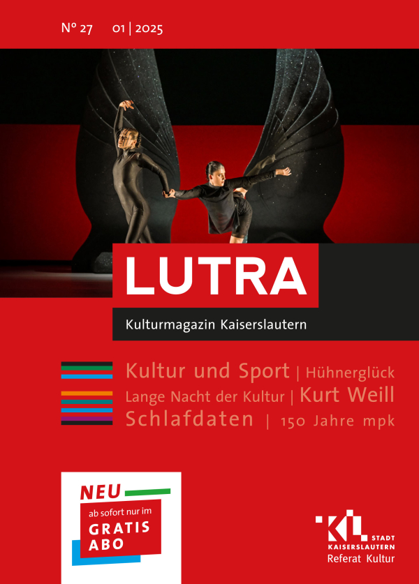 Ob und wie Kultur und Sport zusammenpassen, damit beschäftigt sich die neue Ausgabe des Kaiserslauterner Kulturmagazins LUTRA. Ab sofort ist sie an den bekannten Auslagestellen erhältlich oder kann kostenlos per Abo unter kultur@kaiserslautern.de bequem nach Hause bestellt werden.