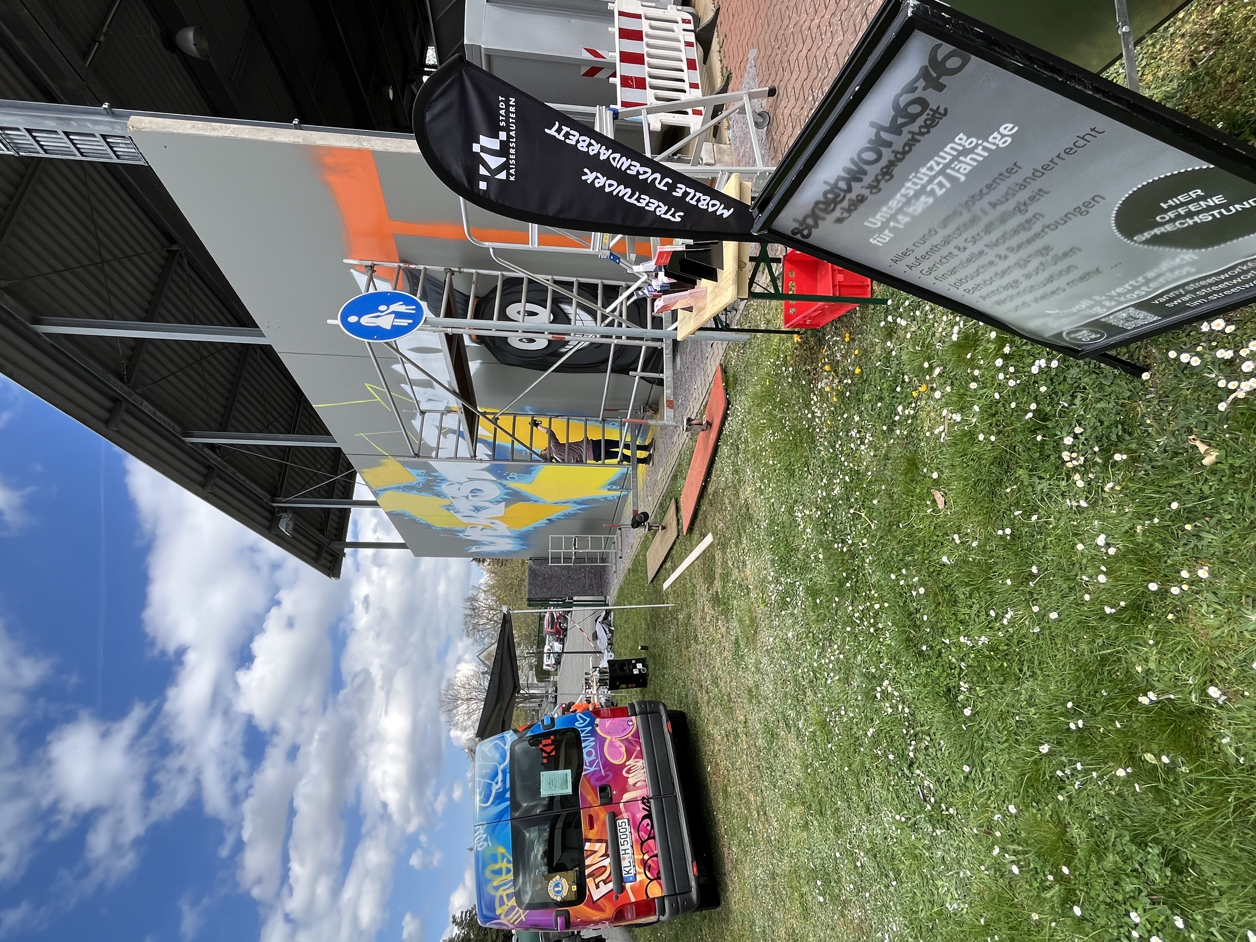 Aus dem kreativen Aufruf entstand schließlich ein besonderes Kooperationsprojekt mit der Mobilen Jugendarbeit der Stadt Kaiserslautern. Das Streetwork-Team der Stadt entwickelte gemeinsam mit Jugendlichen ein individuelles Design, das anschließend in den Osterferien am 14. April 2025 realisiert wurde. Mit viel Begeisterung und Engagement wurde die rund vier Meter hohe Wand mit einem aussagekräftigen Schriftzug und verschiedenen Recycling-Motiven farbenfroh gestaltet.