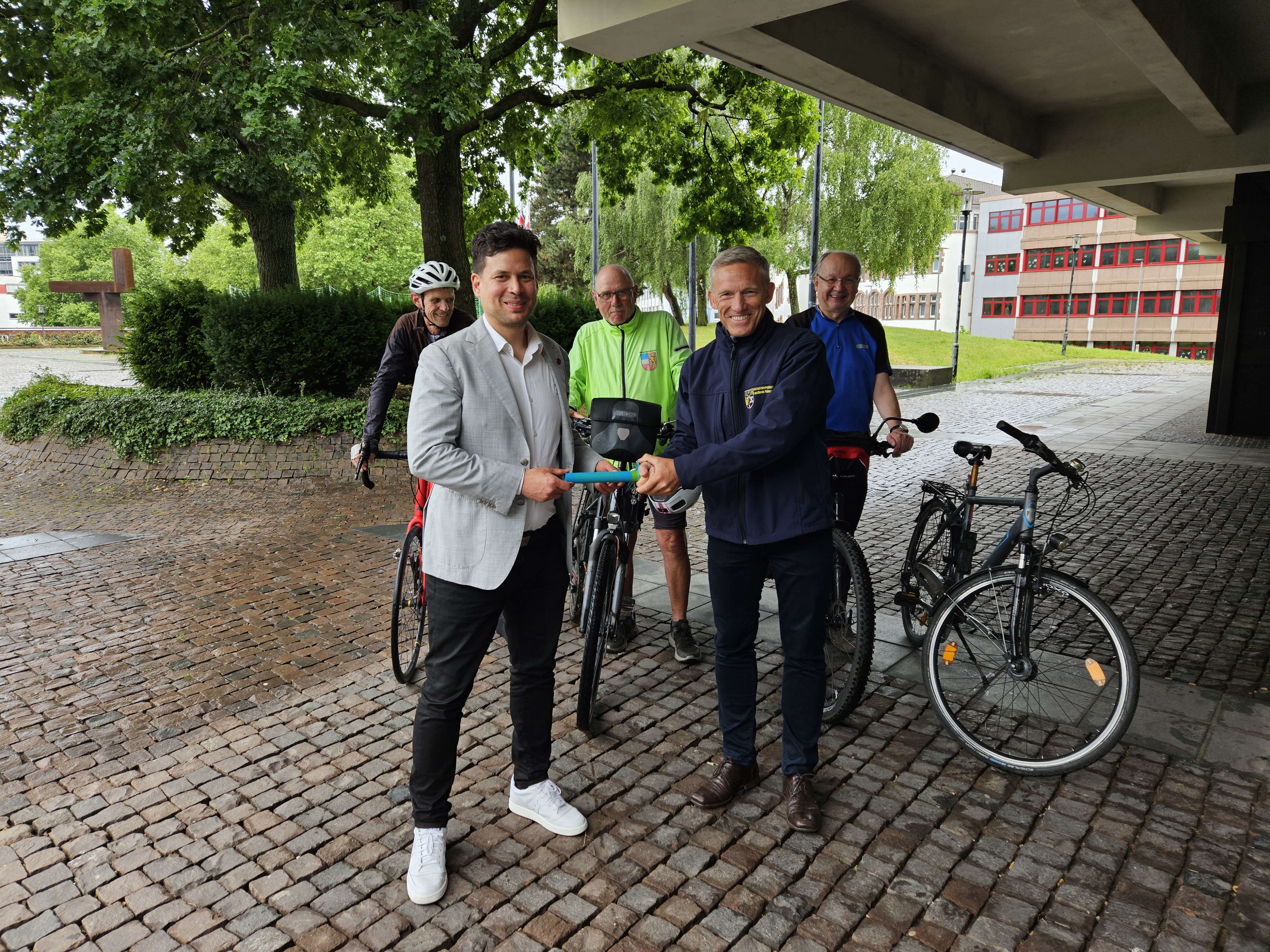 Vorher wurde noch feierlich der Stadtradeln-Staffelstab vom Beigeordneten Manuel Steinbrenner an den Landrat Ralf Leßmeister übergeben, denn der Landkreis Kaiserslautern startet ab dem 5. Juni ins Stadtradeln. Viele Stadtradlerinnen und Stadtradler werden dies nutzen, um weitere drei Wochen lang klimafreundlich unterwegs zu sein.