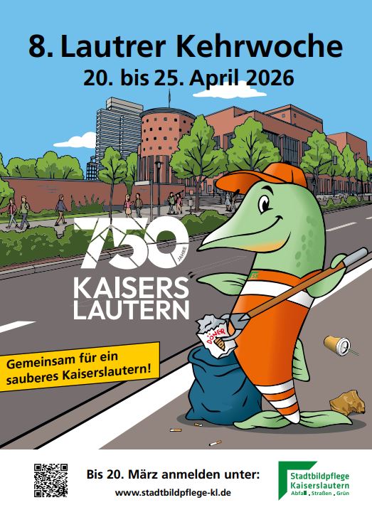 Die Frühjahrsputzaktion Lautrer Kehrwoche der Stadtbildpflege Kaiserslautern (SK) ist eine gute Gelegenheit, sich für eine saubere Stadt zu engagieren. Tausende Bürgerinnen und Bürger nehmen jährlich an der Müllsammelaktion teil und setzen ein deutliches Signal für mehr Stadtsauberkeit. In diesem Jahr findet die Reinigungswoche vom 20. bis 25. April statt. Onlineanmeldungen sind ab sofort bis zum 20. März unter www.stadtbildpflege-kl.de möglich.