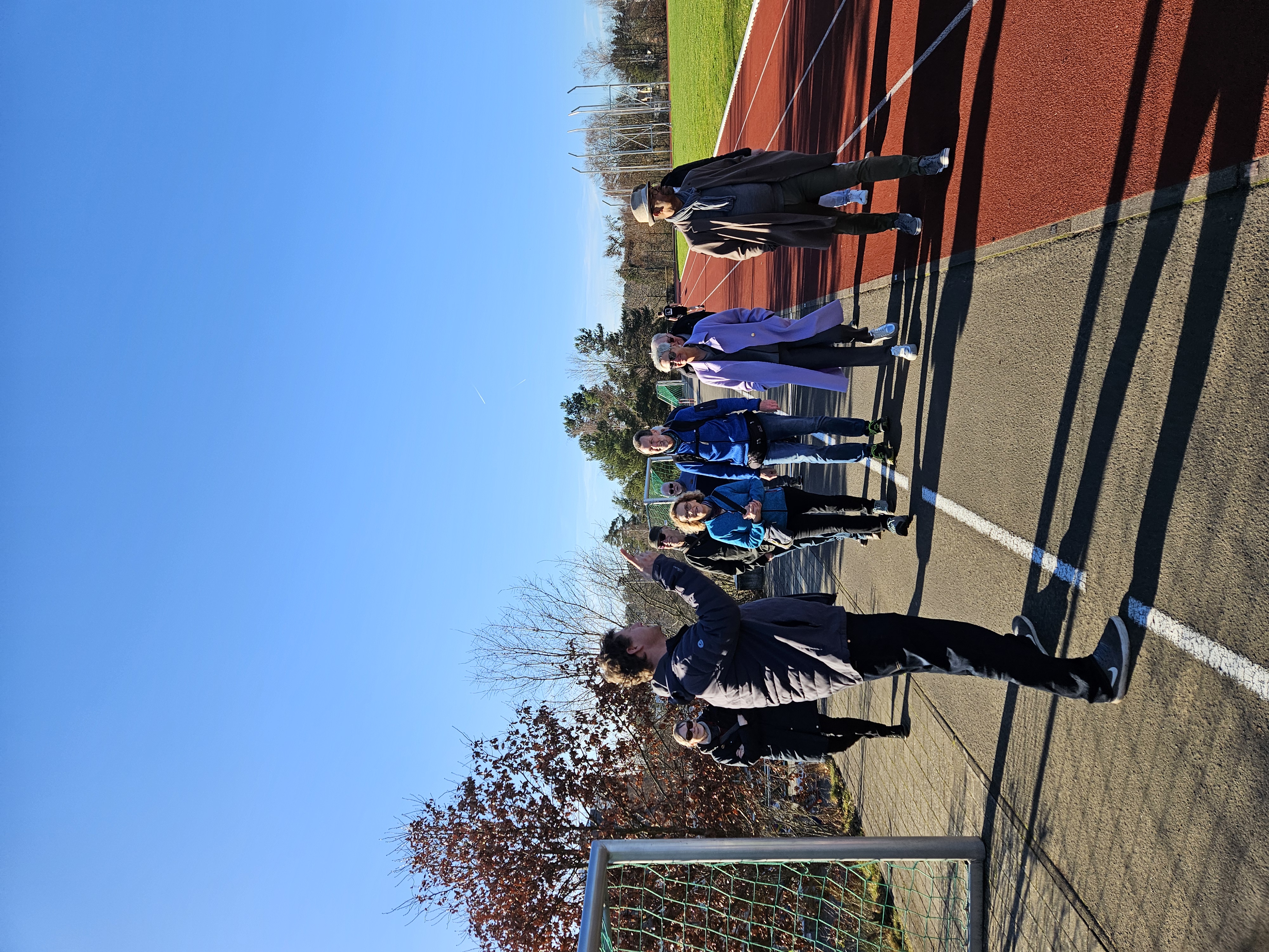 Von der Kleingartenanlage aus machte sich die Gruppe dann ins direkt benachbarte Sportgelände der RPTU auf. Dort übernahm Max Sprenger, Leiter des Zentrums für Sport, Gesundheit und Wohlbefinden an der RPTU, die Führung. Wie Sprenger erklärte, handelt es sich bei der Anlage um eine der wenigen Hochschulsportflächen in Deutschland, die nicht nur Uni-Mitarbeitenden und Studierenden zur Verfügung stehe, sondern – gegen eine kleine monatliche Gebühr – allen Bürgerinnen und Bürgern. Auf dem herrlich gestalteten Gelände warten über 90 Sportarten darauf, entdeckt zu werden. Nicht nur optisches Highlight ist Peak 17, der 2024 eröffnete und 17 Meter hohe Kletterturm, der dem Leistungssport und dem Breitensport gleichermaßen zur Verfügung steht.