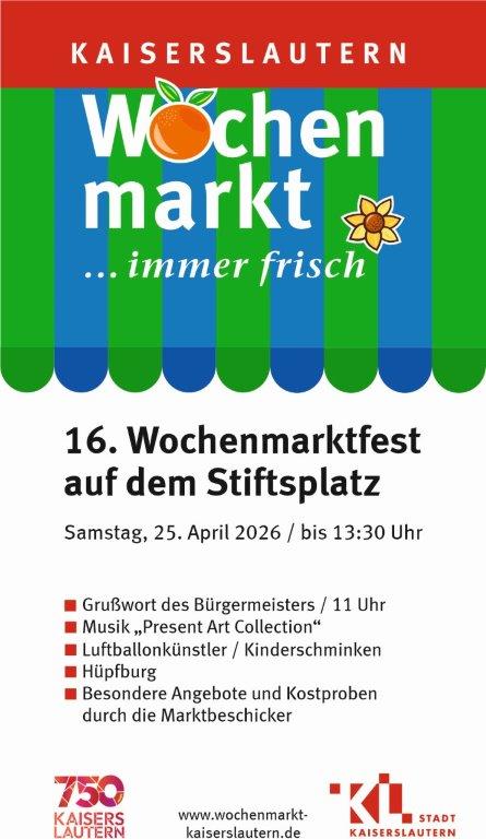 Mit frischen Produkten, kulinarischen Kostproben und einem besonderen Gewinnspiel feiert der Kaiserslauterer Wochenmarkt am 25. April wieder sein traditionelles Wochenmarktfest. Die Veranstaltung bietet Besucherinnen und Besuchern die Gelegenheit, die Vielfalt des Marktes in entspannter Atmosphäre zu entdecken und gleichzeitig Teil des Stadtjubiläums zu werden.