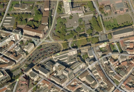 Das Areal der "Neuen Stadtmitte" verläuft über den Platz Altes Pfalztheater, die Burg- und Fruchthallstraße bis zum Schillerplatz und der Fruchthalle.