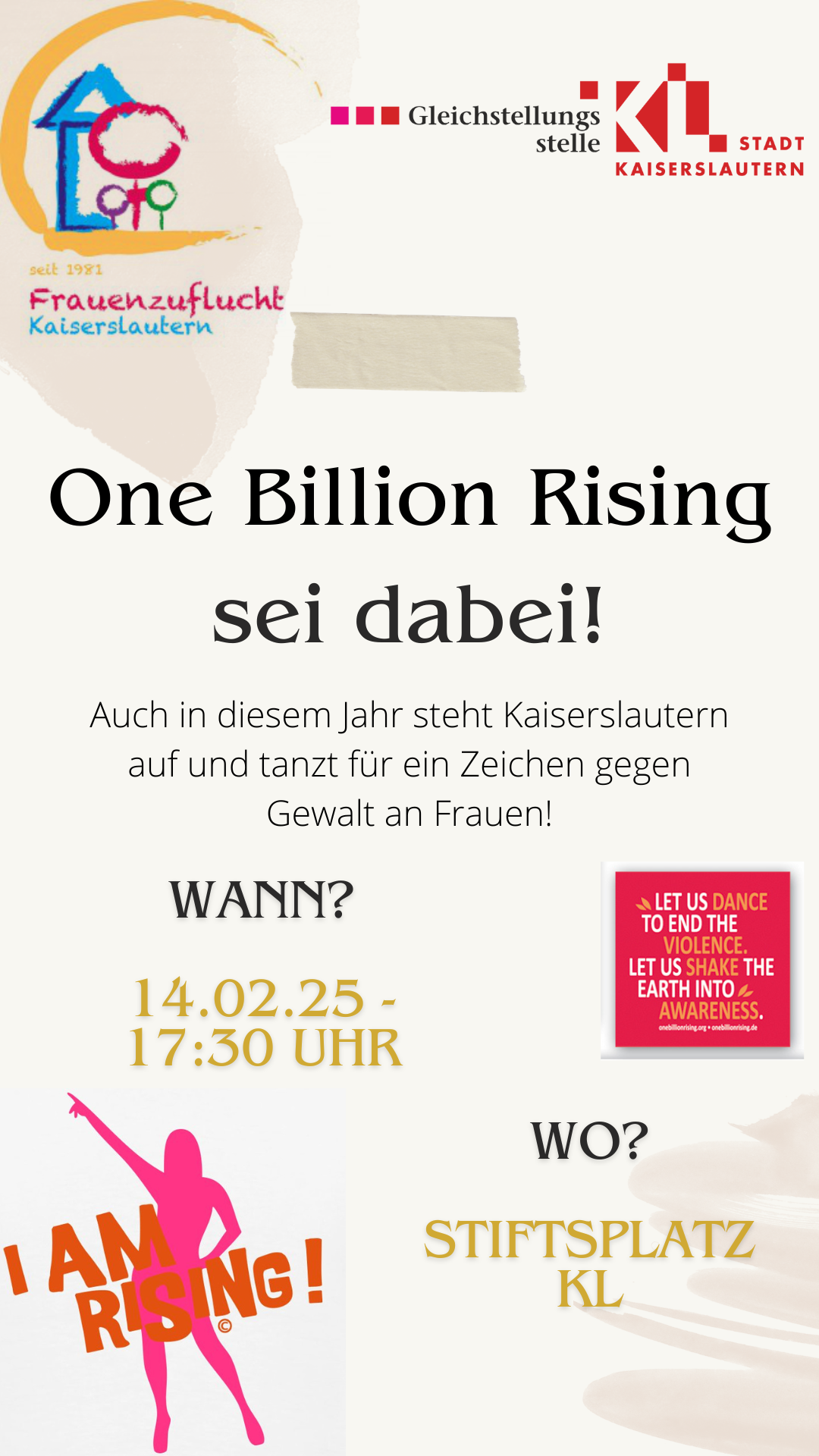 Am 14. Februar 2025 um 17:30 Uhr wird der Stiftsplatz in Kaiserslautern zum Aktionsplatz für One Billion rising: