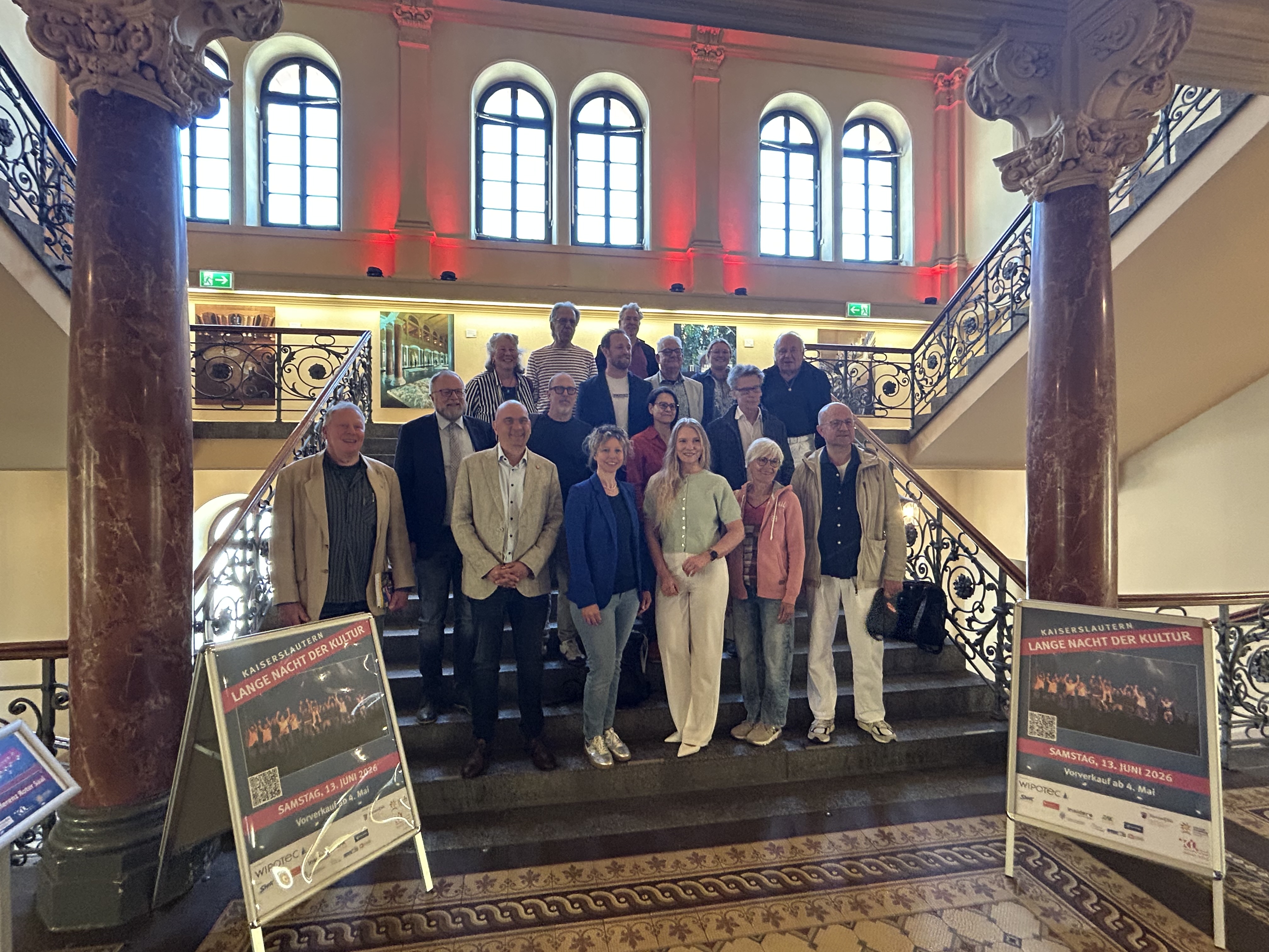 Max Punstein und Manfred Schulz im Kreise der Vertragspartner der Langen Nacht der Kultur 2026 © Stadt Kaiserslautern