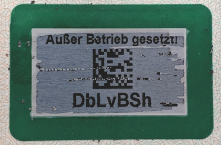 Bildbeschreibung: freigelegter Sicherheitscode der Zulassungsbescheinigung Teil 1