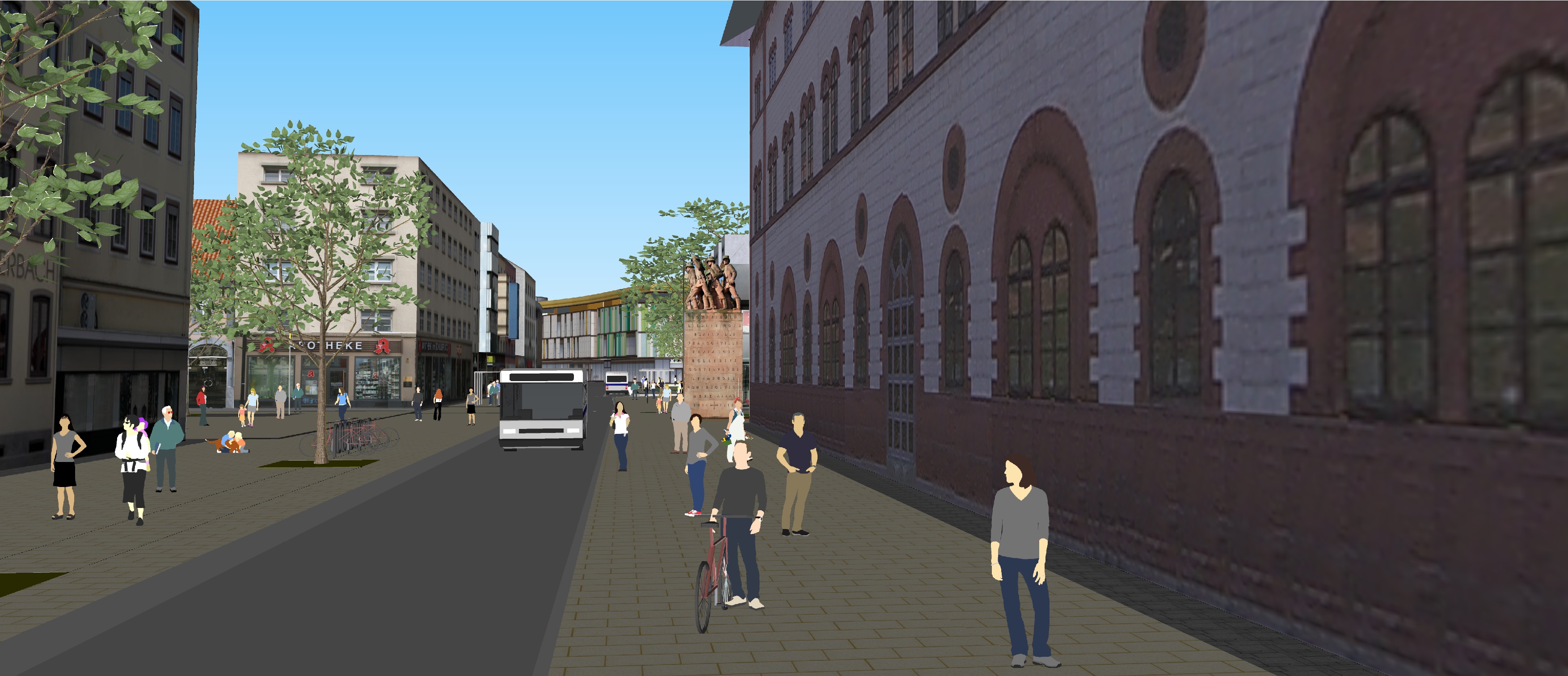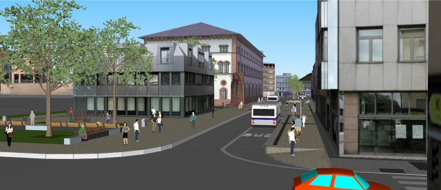 Über die nachfolgenden Visualisierungen für den Bereich Burgstraße wird gezeigt, wie er nach Beendigung der Baumaßnahmen aussehen soll.