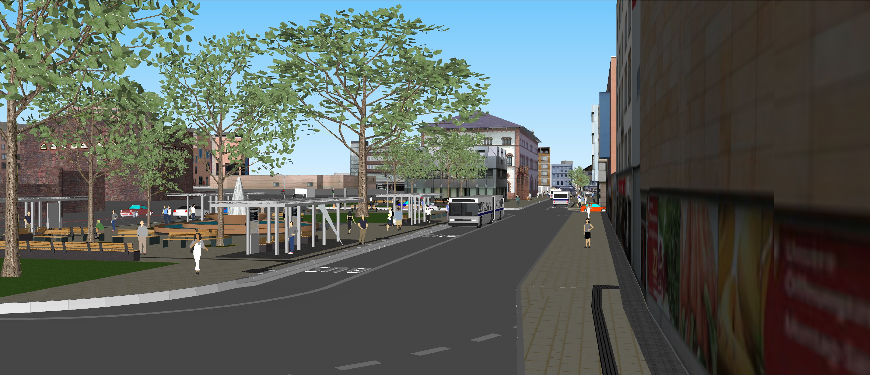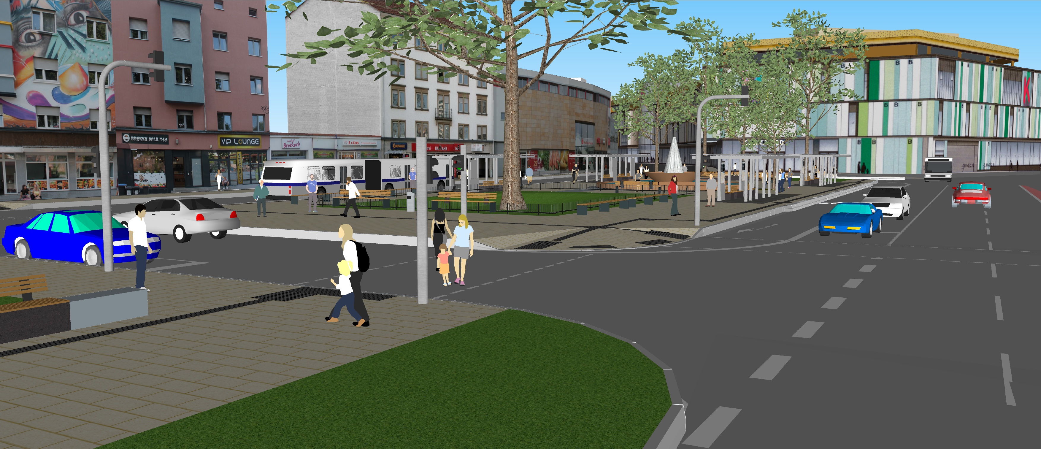 Die komplette Neugestaltung der Stadtmitte wird barrierefrei ausgebaut und entspricht somit den heutigen Anforderungen an moderne Mobilitätsangebote.