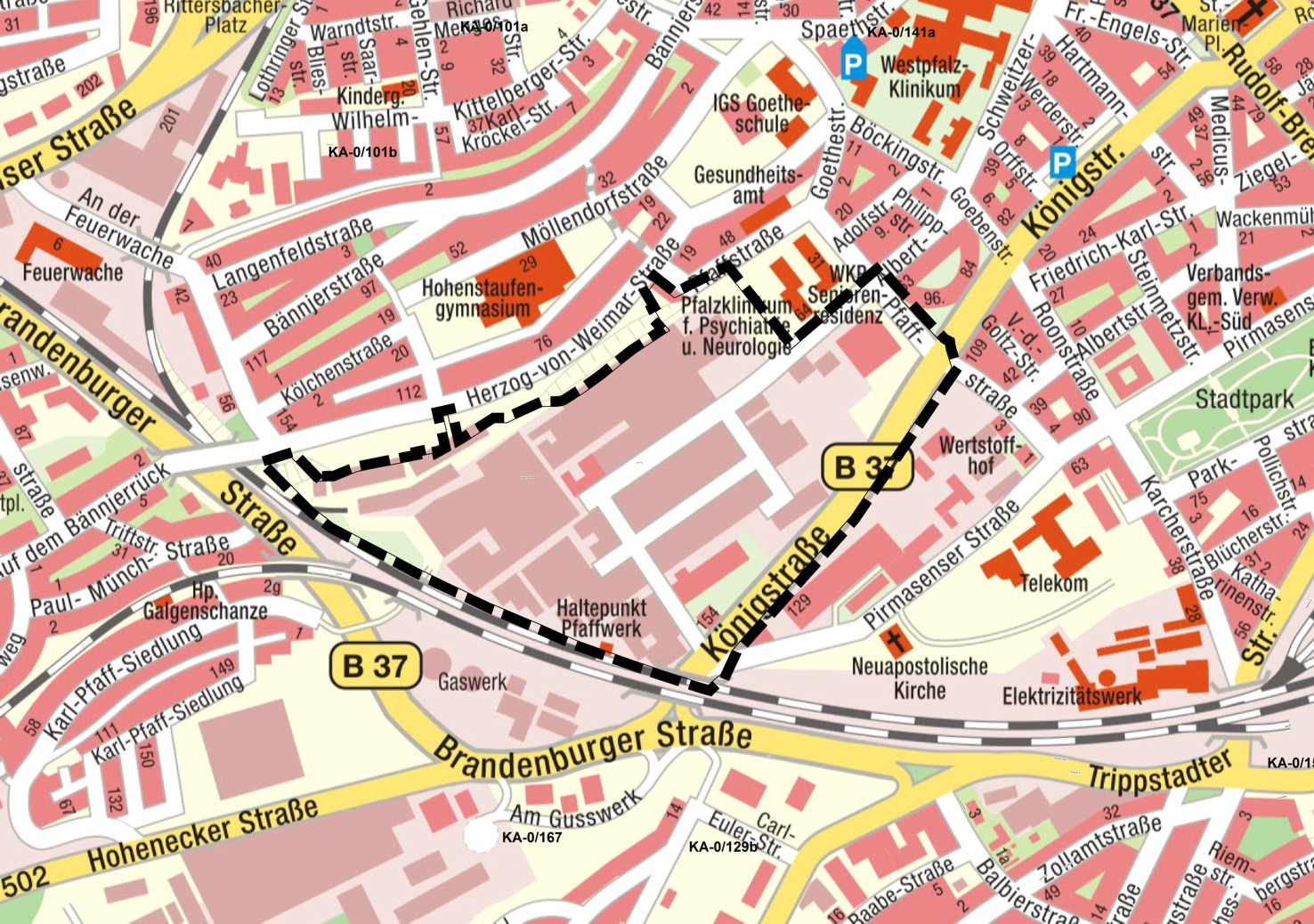 | Lage: | Das Gebiet liegt im Südwesten der Innenstadt von Kaiserslautern. Es befindet sich ca. 1,5 Kilometer von der Stadtmitte entfernt. |