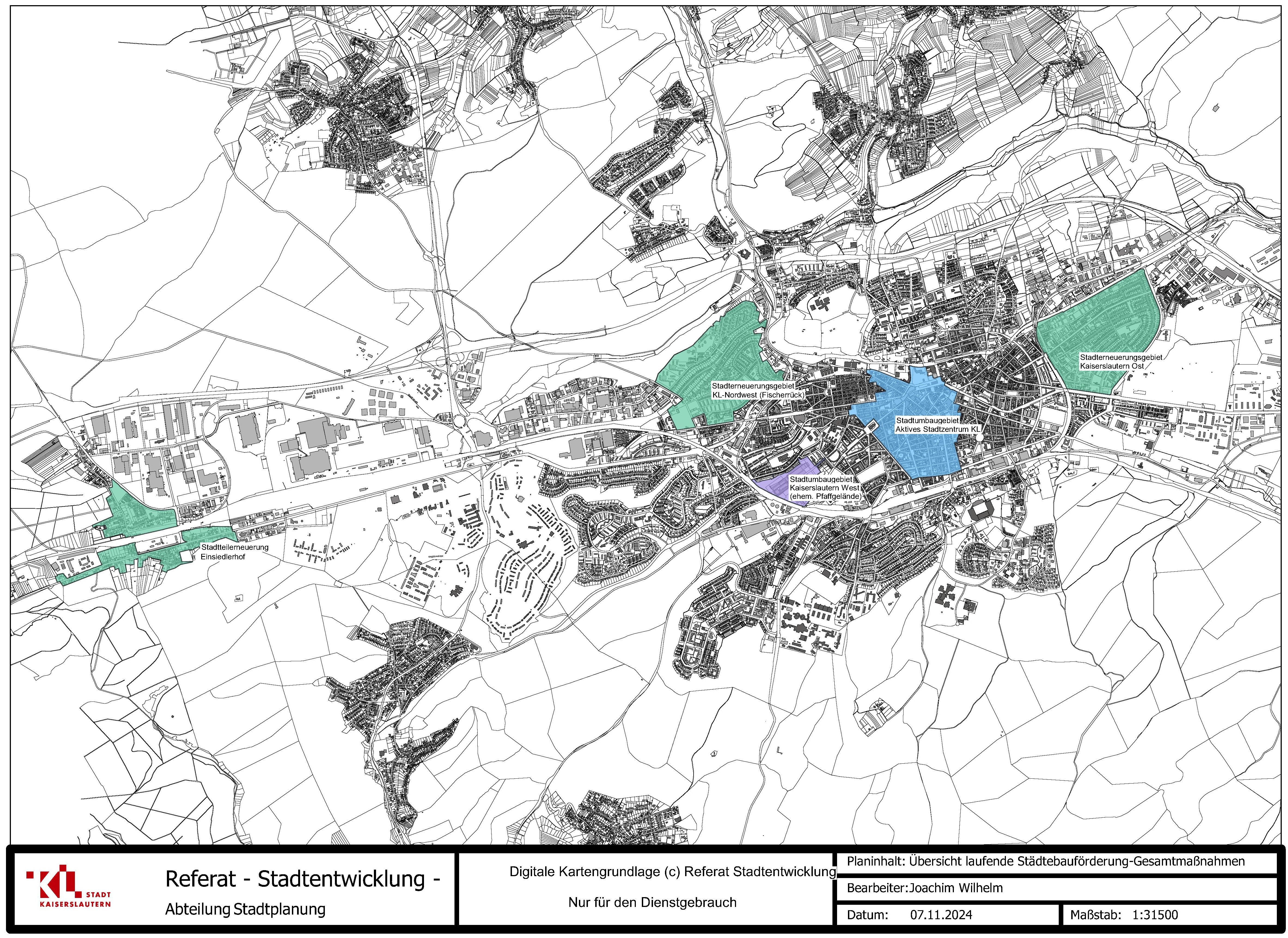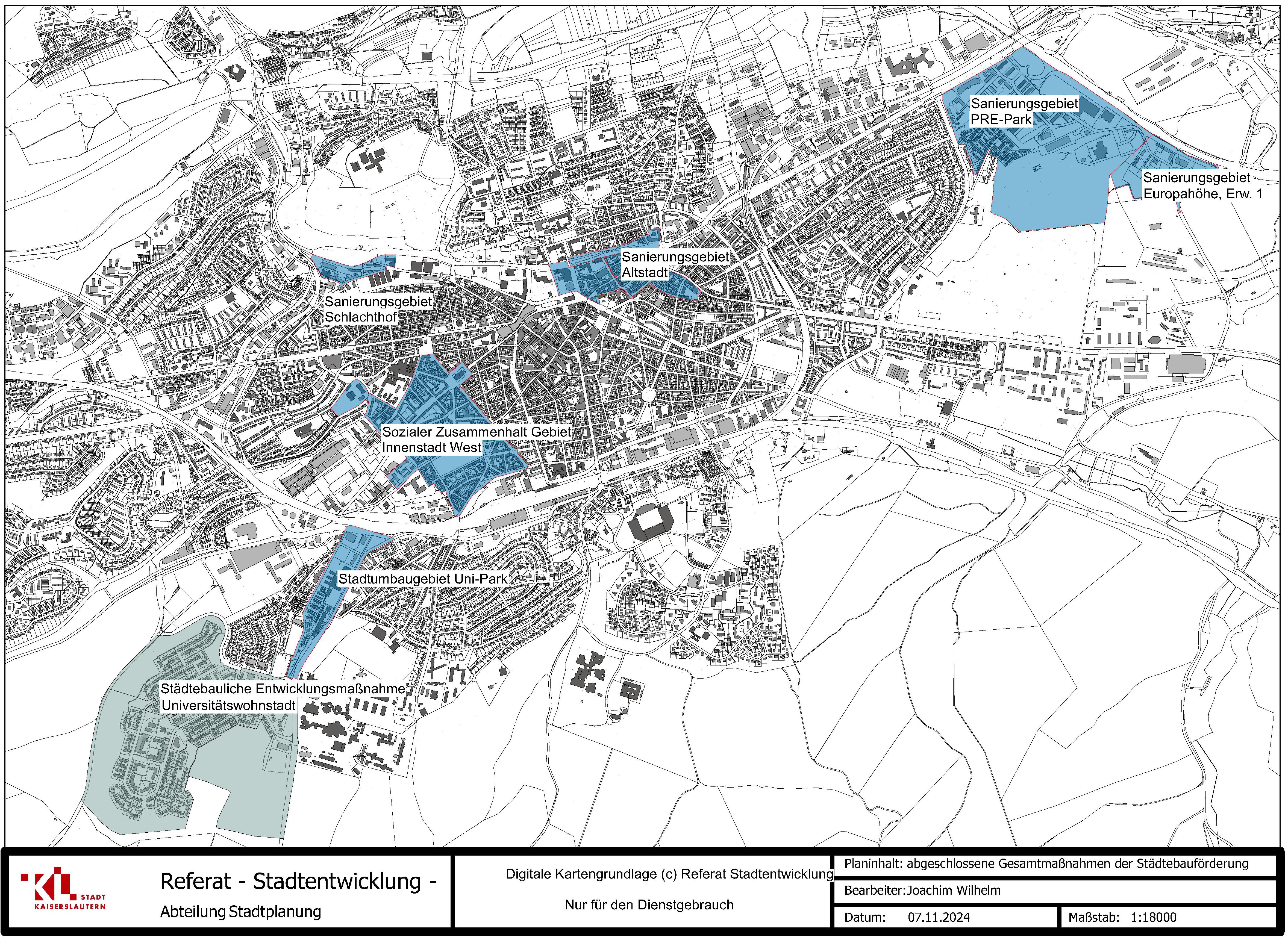 Die Lage der laufenden Maßnahmen im Kaiserslauterer Stadtgebiet ist in der folgenden Karte dargestellt: