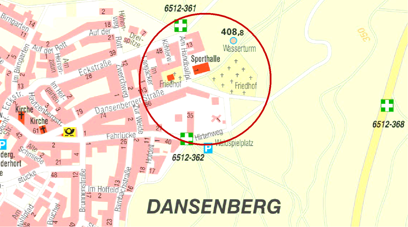 Am östlichen Ortsrand von Dansenberg gelegen befindet sich mit seinen mächtigen Birken und vereinzelten Linden die Anlage des Altfriedhofs. Dieser spiegelt mit seiner Sandsteinmauer und Trauerhalle die formale Gestaltung historischer Friedhöfe historisch wieder. Eine separate Erweiterungsfläche mit Waldcharakter wurde 1990 angelegt.