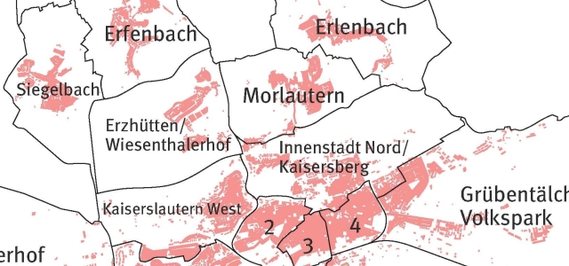 Stadtkarte von Kaiserslautern mit den Ortsbezirksgrenzen