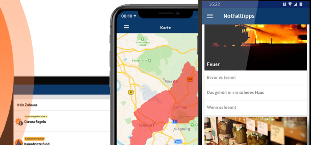 Mit der Notfall-Informations- und Nachrichten-App des Bundes (NINA) erhalten Sie wichtige Warnmeldungen des Bevölkerungsschutzes für unterschiedliche Gefahrenlagen wie zum Beispiel Gefahrstoffausbreitung oder einen Großbrand. Wetterwarnungen des Deutschen Wetterdienstes und Hochwasserinformationen der zuständigen Stellen der Bundesländer sind ebenfalls in die Warn-App integriert.