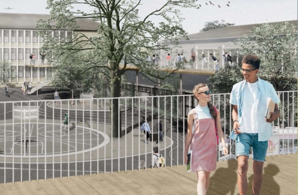Umgestaltung des Bereichs um die Busbucht mit unter anderem dem Ziel der Flächenentsiegelung und -begrünung. Mit de Umgestaltung wird nicht nur eine Aufwertung angestrebt, vielmehr soll sie auch dem Klimaschutz sowie der Anpassung an den Klimawandel dienen.