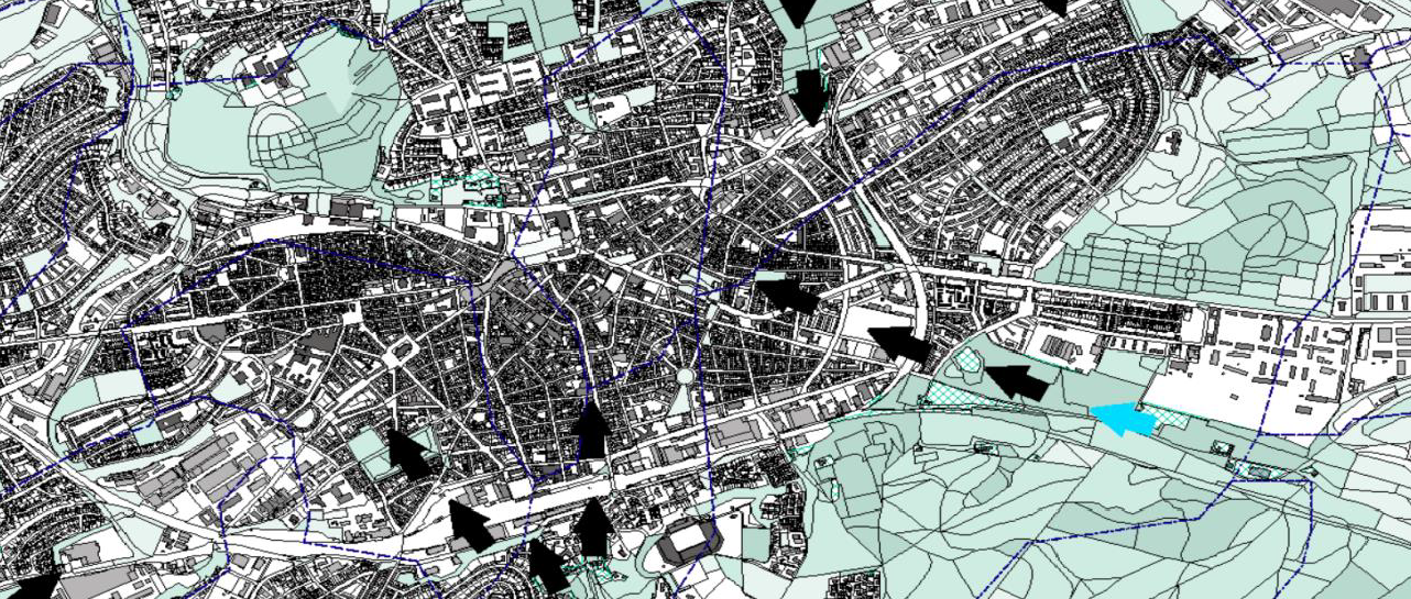 Zur Sicherung der Durchlüftung der Stadt sollen die Frischluftschneisen der Stadt (GEONET 2012) überprüft / aktualisiert und im Rahmen der Bauleitplanung gesichert werden. Konkrete Maßnahmen zur Freihaltung sollen nach Aktualisierung der Klimaanalyse 2022/23 getroffen werden.