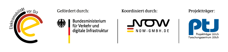 Logokombination des Bundesministeriums für Verkehr, digitale Infrastruktur der NOW-GmbH und PtJ