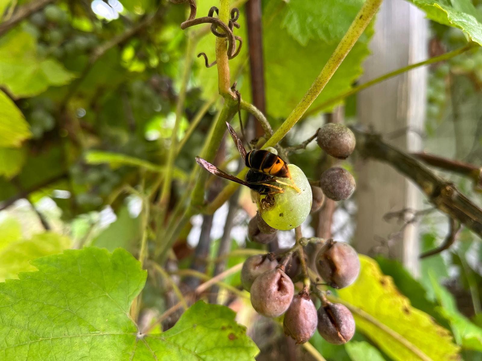 Asiatische Hornisse: Das Gelb am Hinterleib, gelbe Beine und eine ansonsten dunkle Färbung sind wesentliche Erkennungsmerkmale. © Stadt Kaiserslautern