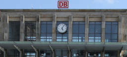 Der Hauptbahnhof Kaiserslautern mit dem Logo der Deutschen Bahn.