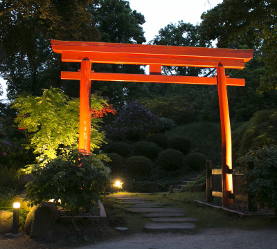 Among the typical elements of a Japanese garden are the ponds, waterfalls, stone arrangements, gravel, tea houses, moss gardens and stone lanterns, the original cultural meaning of which does not necessarily have to be known to the visitors in order to feel the meditative effect of this artistically arranged park.